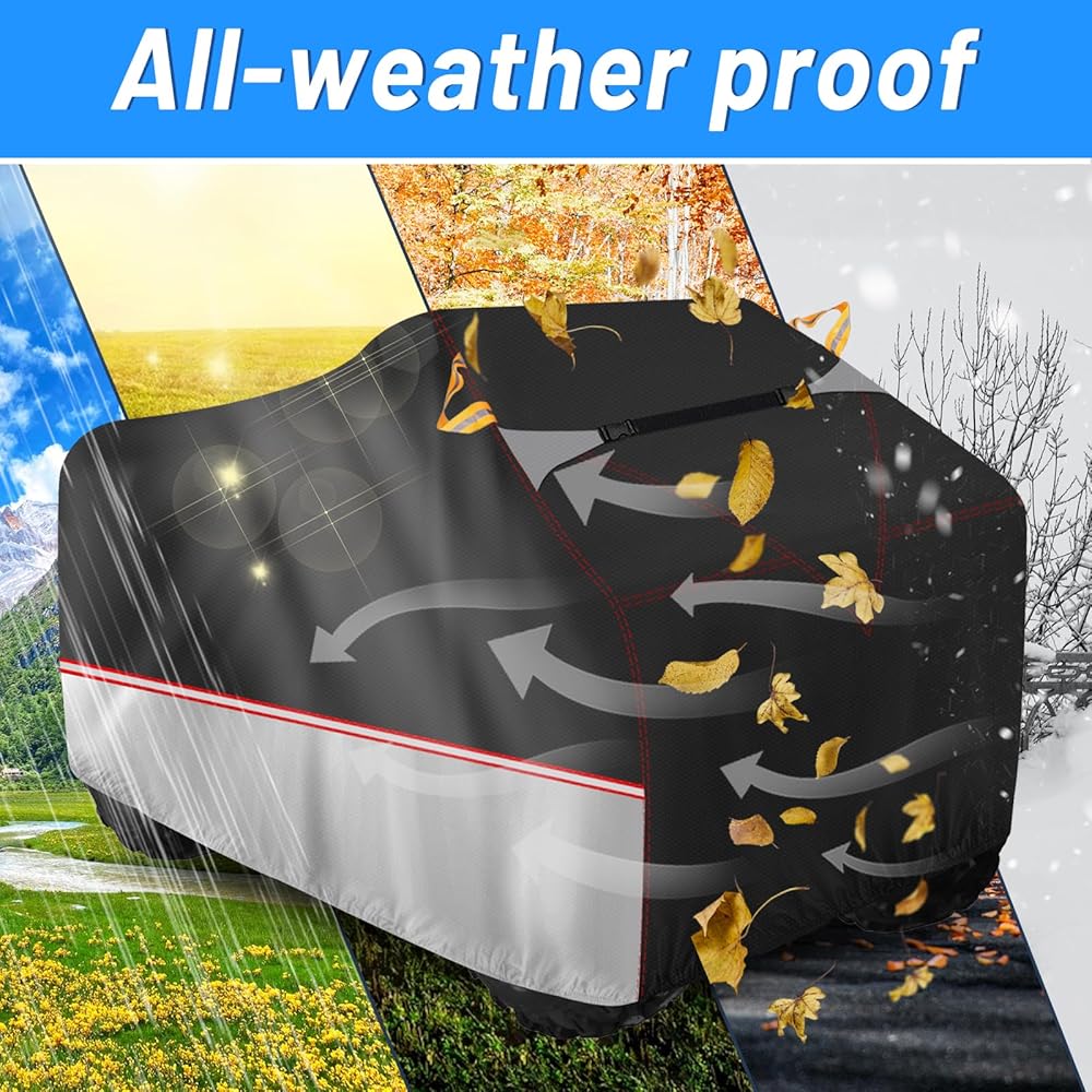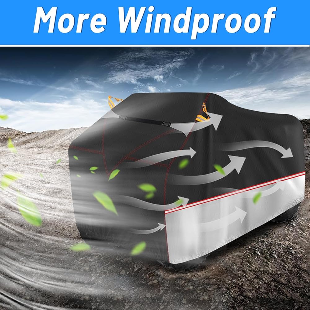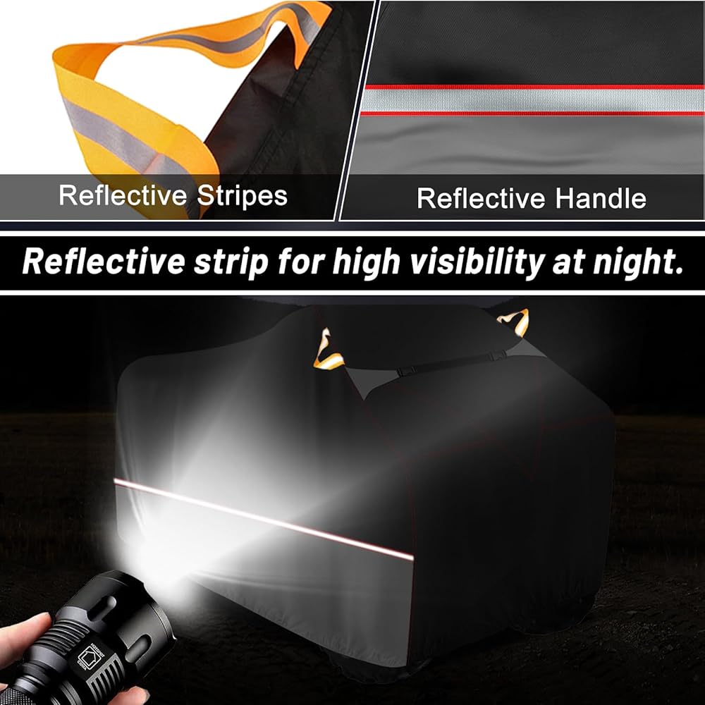 • [شريط عاكس] تمر الأشرطة العاكسة عبر الغطاء من الأمام إلى الخلف، مما يحمي ATV في الظلام مع ضمان الجمال. كما أنها تحتوي على مقبض شريط عاكس، لذلك يمكنك استخدامه بسهولة في الظلام.