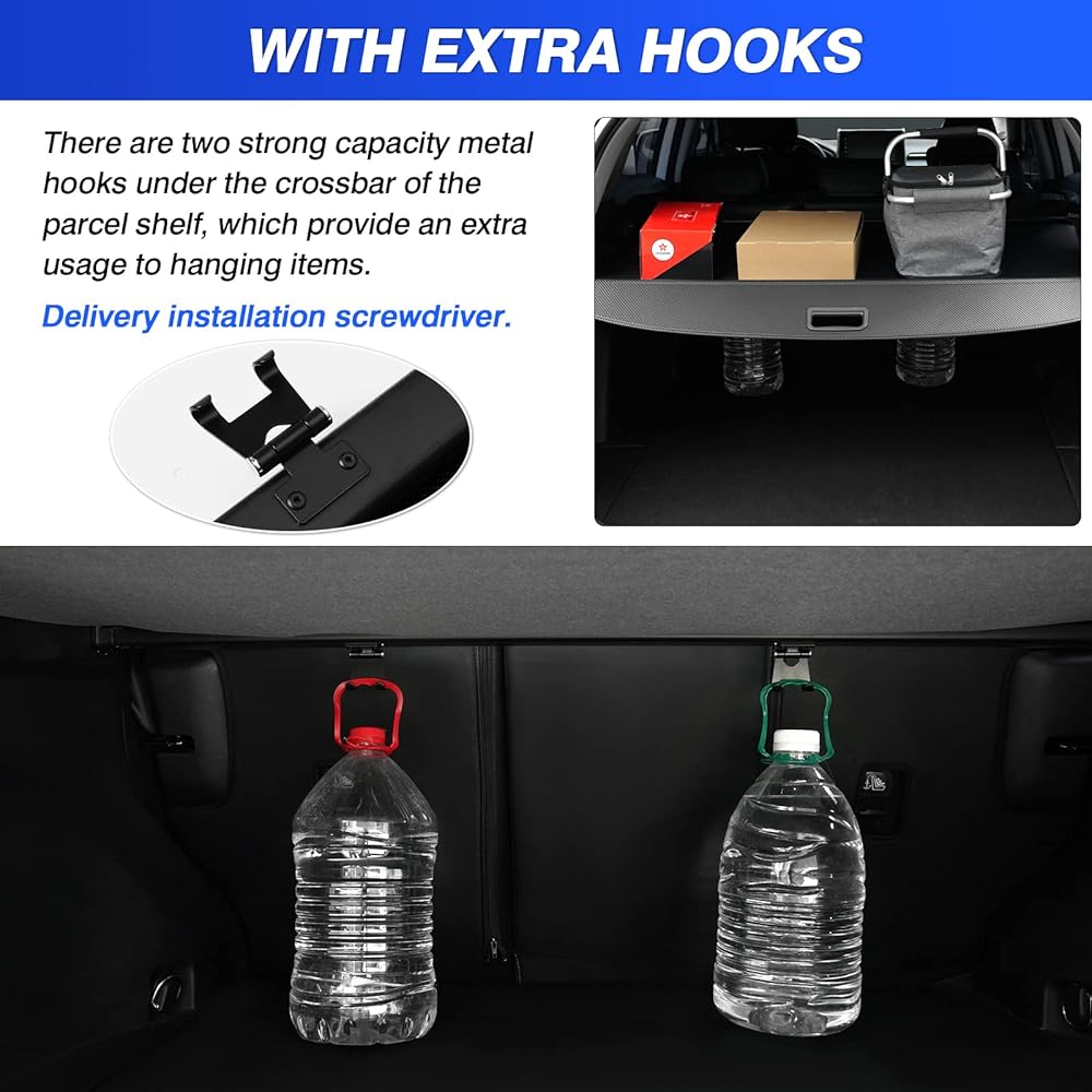 مع خطافات إضافية - يوجد خطافان معدنيان قويان أسفل العارضة في رف الطرود، مما يوفر استخدامًا إضافيًا للأشياء المعلقة.