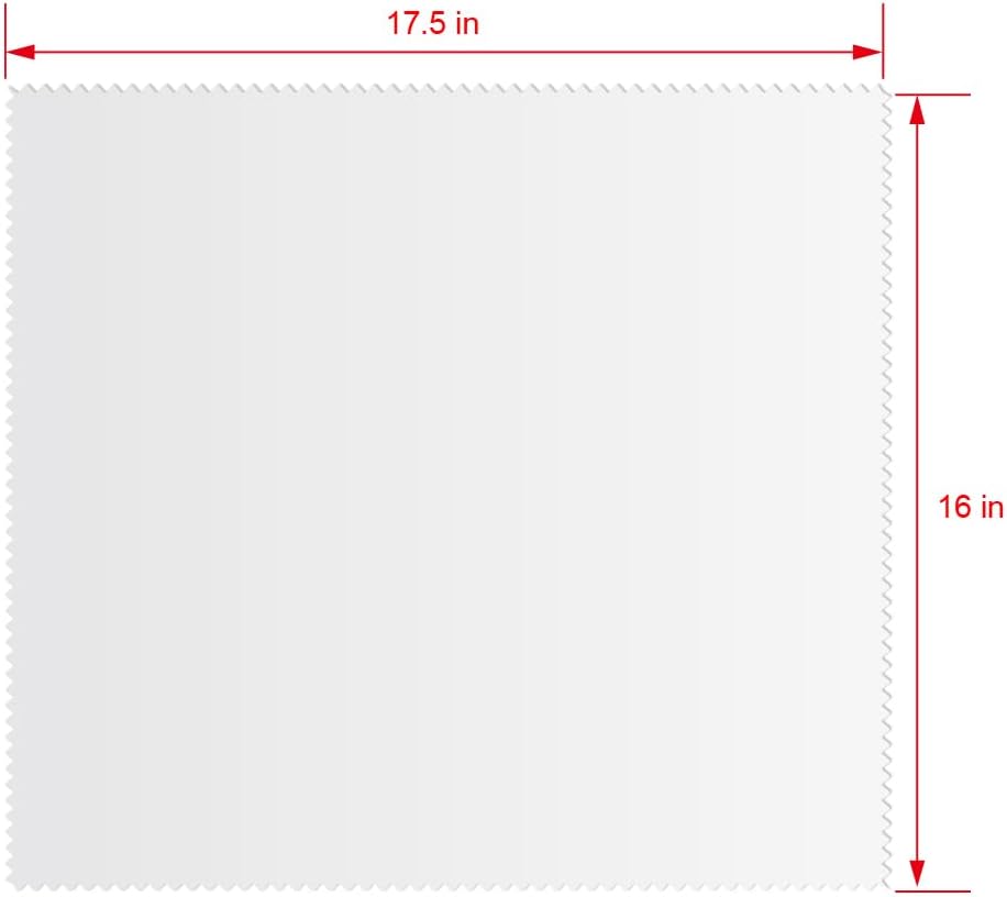 The size of the microfiber cleaning cloths is 17.5 X 16 inches, with an area twice that of 12 X 12 inches and 6.67 times that of 6 X 7 inches.