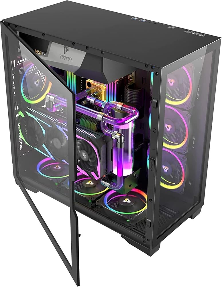 - Fans not included.Full-View PC Case with Seamless Edge on Front & Side Panel.