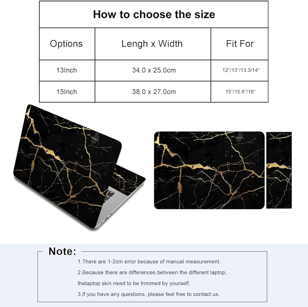 تصميم بالحجم الدقيق: ملصق الكمبيوتر المحمول مقاس 15 بوصة حوالي 15 بوصة (38 سم) × 10.6 بوصة (27 سم) - يناسب أجهزة الكمبيوتر المحمولة ذات الشاشة العريضة مقاس 15 بوصة و15.6 بوصة و16 بوصة، يرجى اختيار ملصق بالحجم المناسب لجهاز الكمبيوتر الخاص بك لضمان الحصول على المقاس المثالي تم قطع النمط. نظرًا لأن المنتج يحتاج إلى القطع، فإن حجم الملصق أكبر من حجم الكمبيوتر.