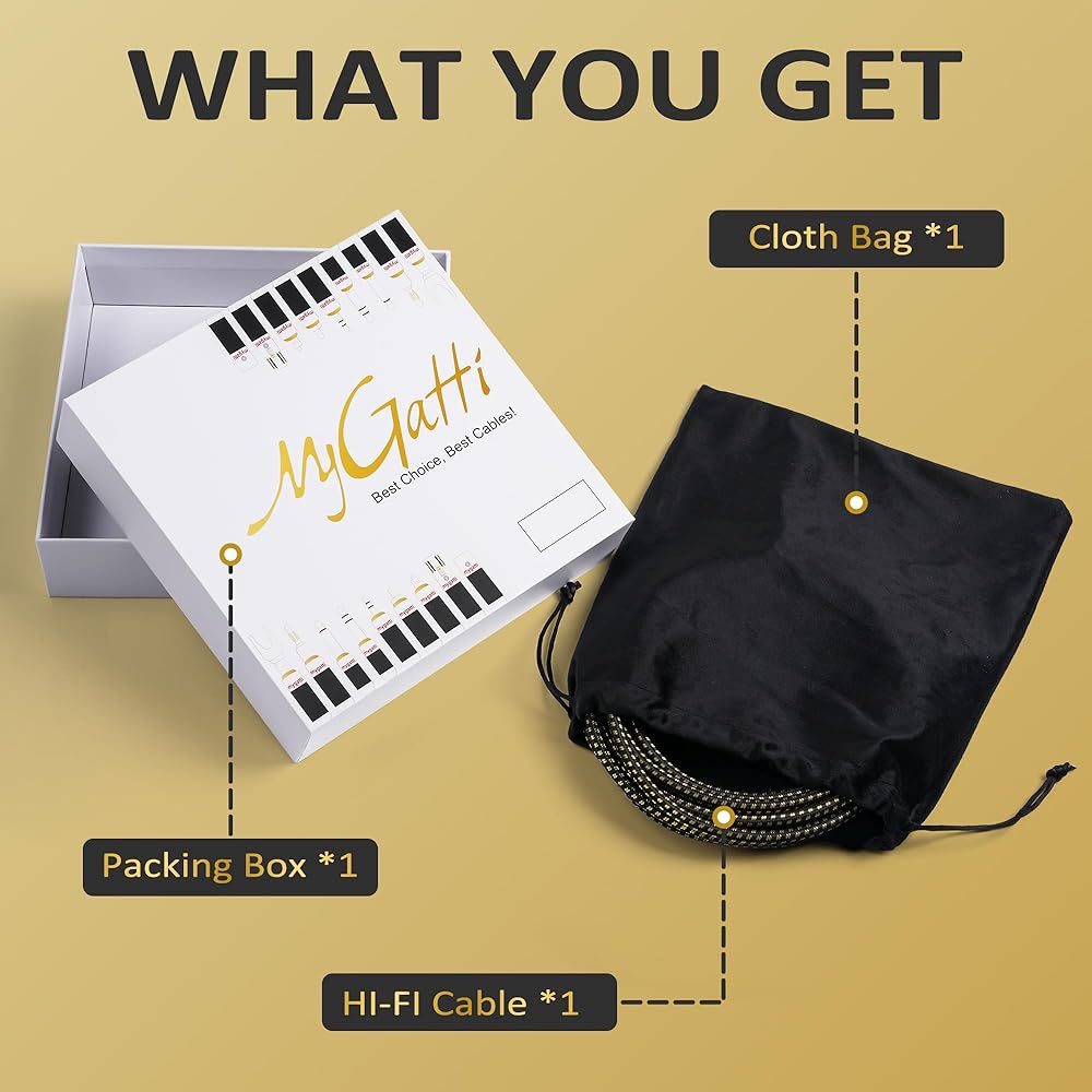 A Great Choice for Audiophiles : The use of high-quality components for this cable makes it far superior to other inexpensive cables, and it will always maintain good performance. If you have any questions about our product, please feel free to contact with our reliable customer service, we will reply you within 24 hours. Package: HI-FI 3.5mm to 2RCA cable*1, velvet cloth bag*1, high-grade paper box*1.