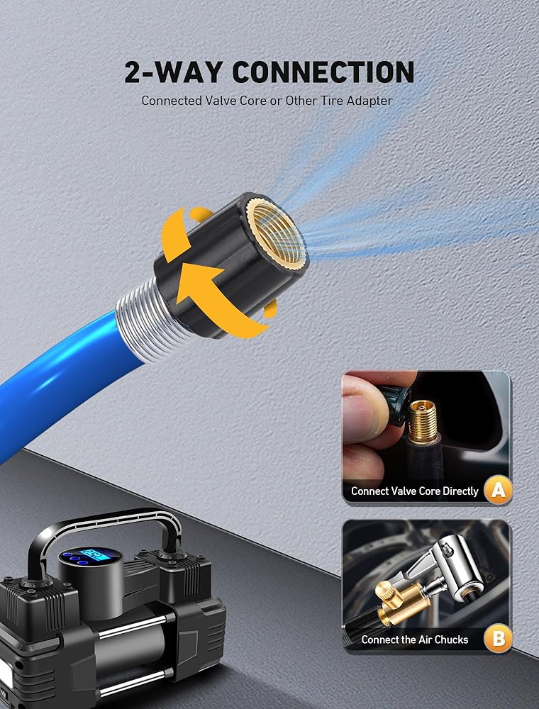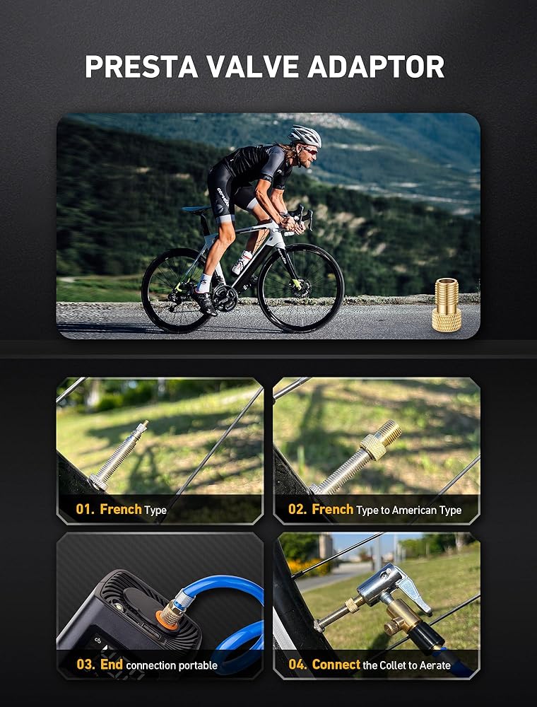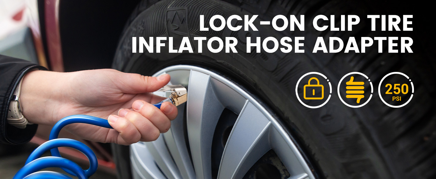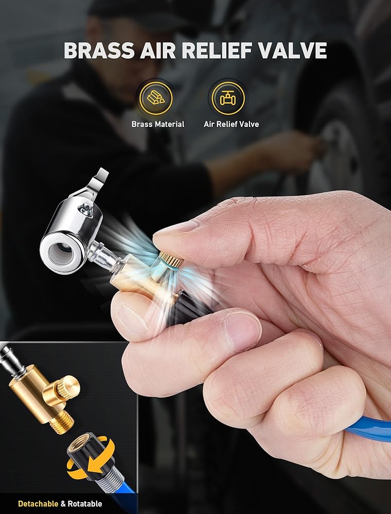 💡【استخدام واسع】: مجموعة محول خرطوم نفخ الإطارات الممتازة مصممة لضاغط/مضخة هواء السيارة المحمولة الشائعة، ومضخة الدراجة الكهربائية، وتحويل وصلة نفخ الإطارات بسهولة إلى اتصال القفل. مناسب عالميًا لنفخ صمام شريدر لمعظم الدراجات والدراجات النارية والشاحنات السيارة وملء هواء السيارة وما إلى ذلك في الولايات المتحدة.