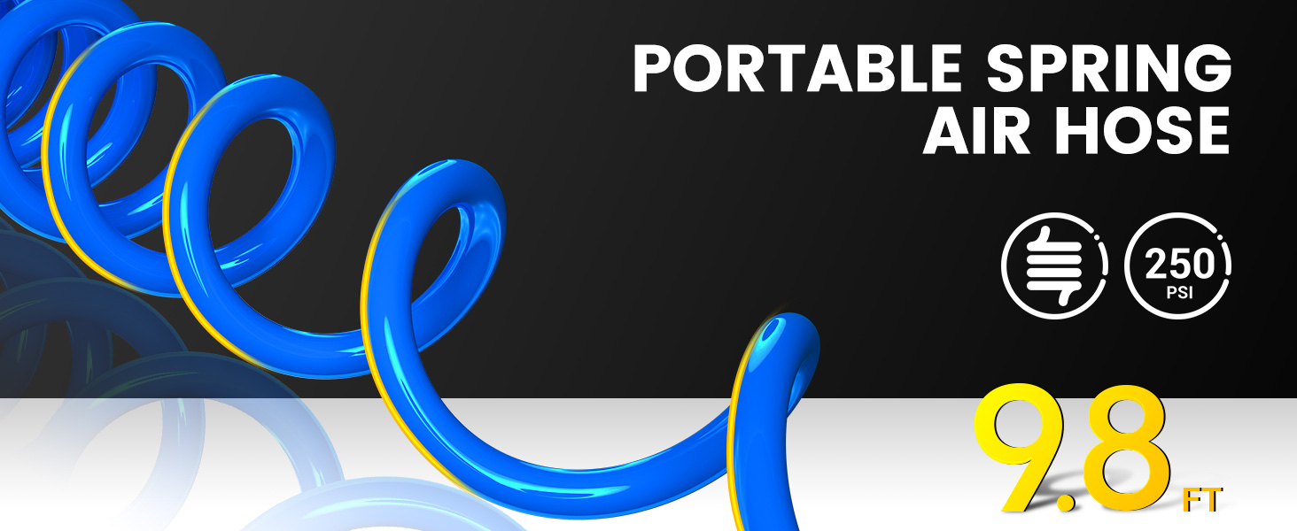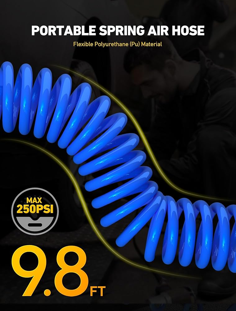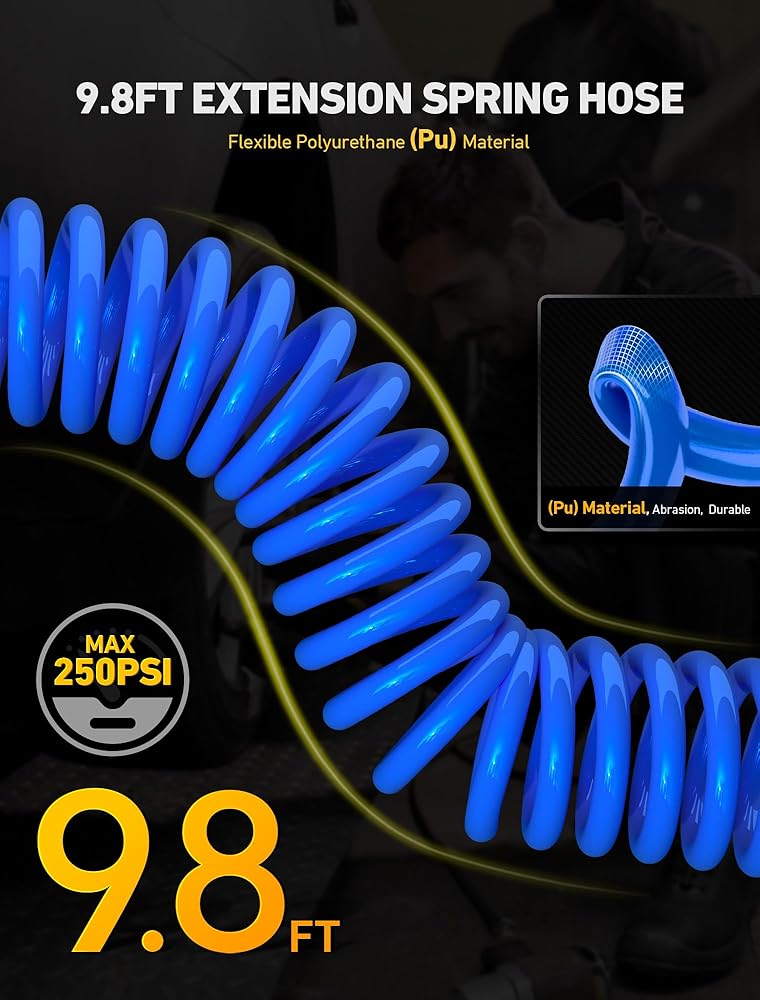 💡【خرطوم زنبركي تمديد بطول 9.8أقدام】: خراطيم هواء زنبركية محمولة تصل إلى 9.8أقدام. مادة البولي يوريثين فائقة المرونة مضادة للالتواء والتآكل والزيت والشحوم وأكثر متانة وخفيفة الوزن وأقل احتمالاً لخدش الأسطح. -40 إلى +150 درجة فهرنهايت، أقصى ضغط عمل 250 رطل لكل بوصة مربعة.