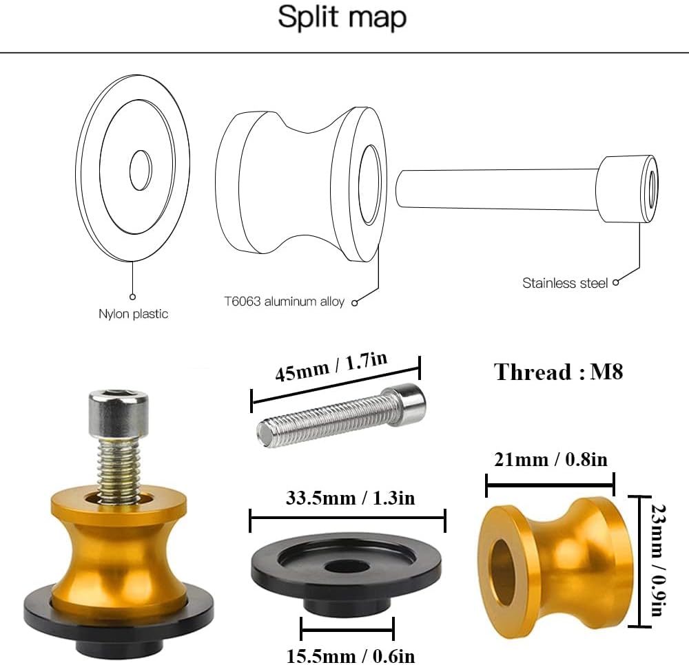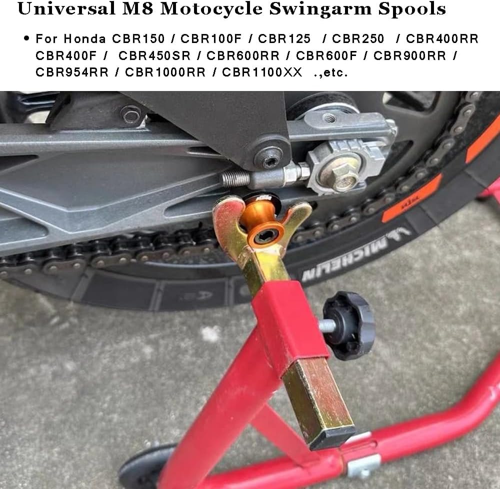 ◆◆◆The swing arm spool screw which is used with the swing arm can easily make the motorbike up and down, to avoid to damage the body of your motorbike while you stop it or repair it.