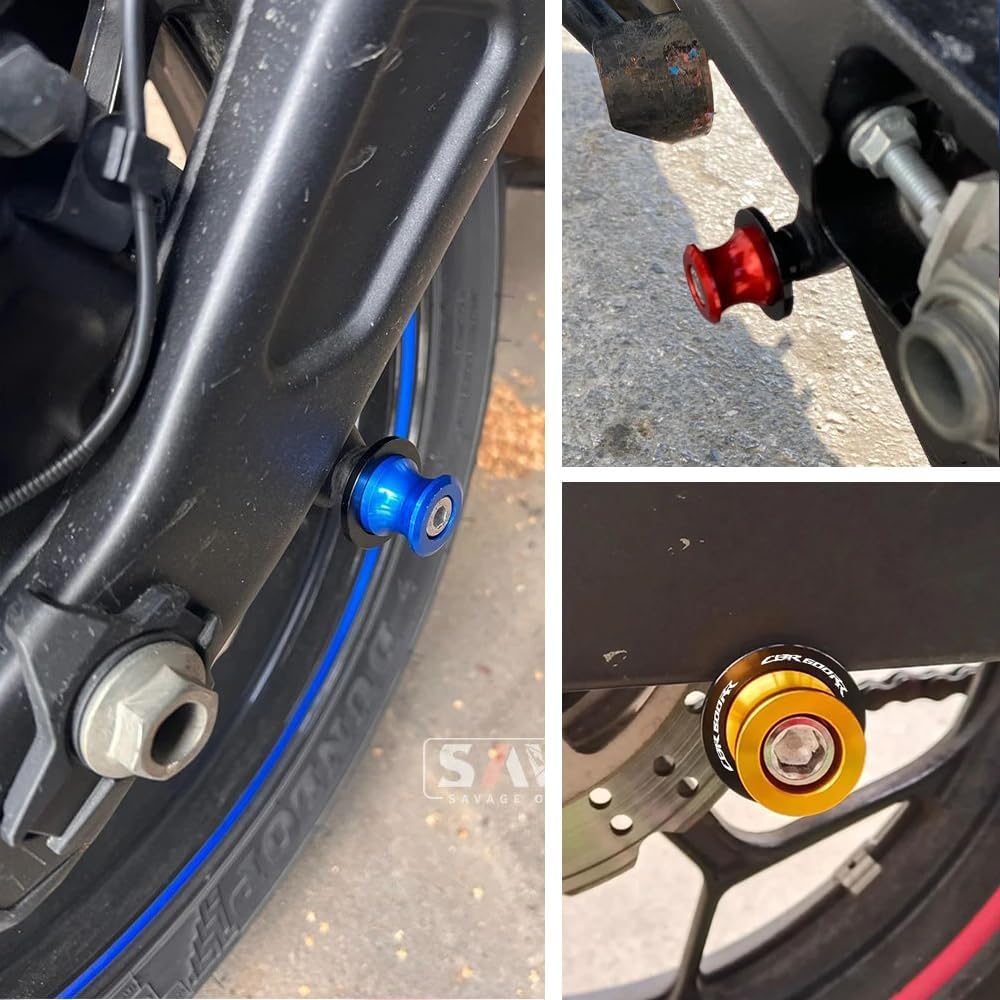◆◆◆Our swing arm spool has a black spacer which is used for Increasing the force area, thus to reduce the damage to the motorcycle body.