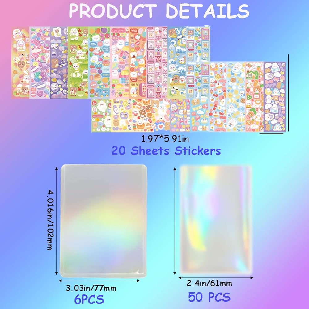 • مجموعة أدوات حماية بطاقات الصور الفوتوغرافية DIY - 50 حافظة بطاقات صور ثلاثية الأبعاد على شكل قلب، 10 قطع حامل بطاقات صلبة مع فيلم، 20 ورقة من ملصقات بطاقات الصور الفوتوغرافية الملونة اللطيفة Kpop من أنماط وأنماط مختلفة مثل العقدة والفقاعات وقلب الحب والشريط والأرنب والدب والفراشات وما إلى ذلك، سوف تلبي الكمية والأناقة الكافية احتياجاتك في سجل القصاصات والحرف اليدوية وألبوم مجلد بطاقات الصور الفوتوغرافية وغيرها من الأعمال اليدوية الأخرى