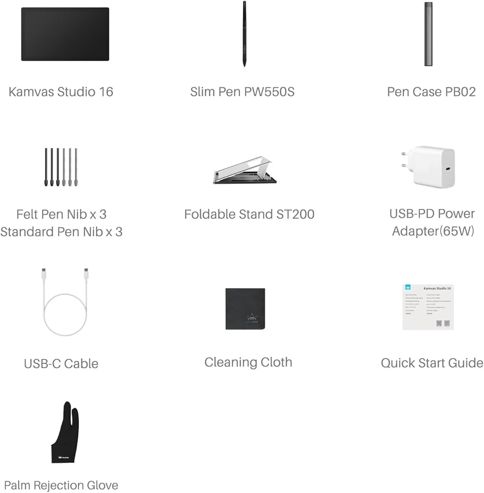 [جهاز مستقل كامل]: Kamvas Studio 16 هو أكثر من مجرد شاشة عرض قلم للرسم والتصميم. كما يمكن استخدامه كجهاز كمبيوتر لتصفح مواقع الويب ولعب ألعاب الفيديو، بالإضافة إلى جهاز لوحي لمشاهدة الأفلام وتحرير المستندات. إنه جهاز لوحي 3 في 1 يتيح لك الإنشاء أو العمل بشكل مستقل أثناء التنقل .