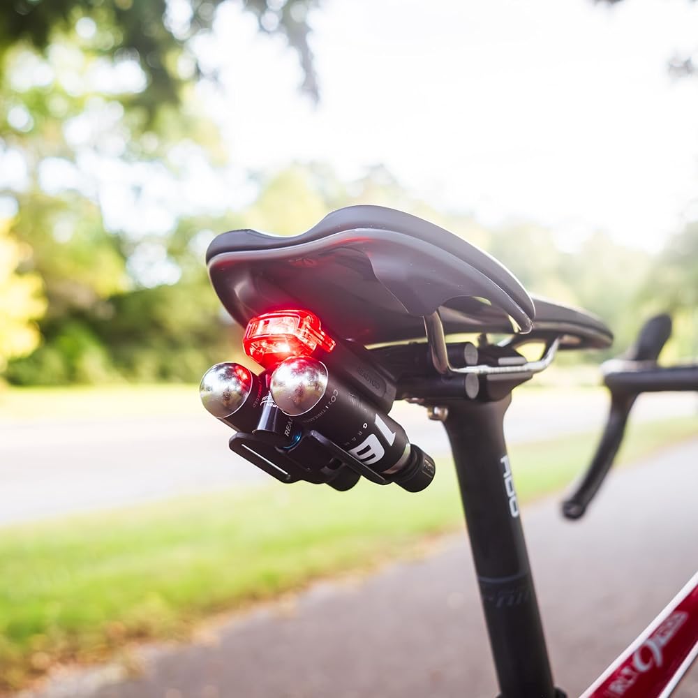 Versatile Mounting - Our bike pump co2 inflator Kit can be mounted directly onto your seat post, top tube, or down tube. It can also integrate with the LUMIS Rear Light to easily click on and off of your bike.