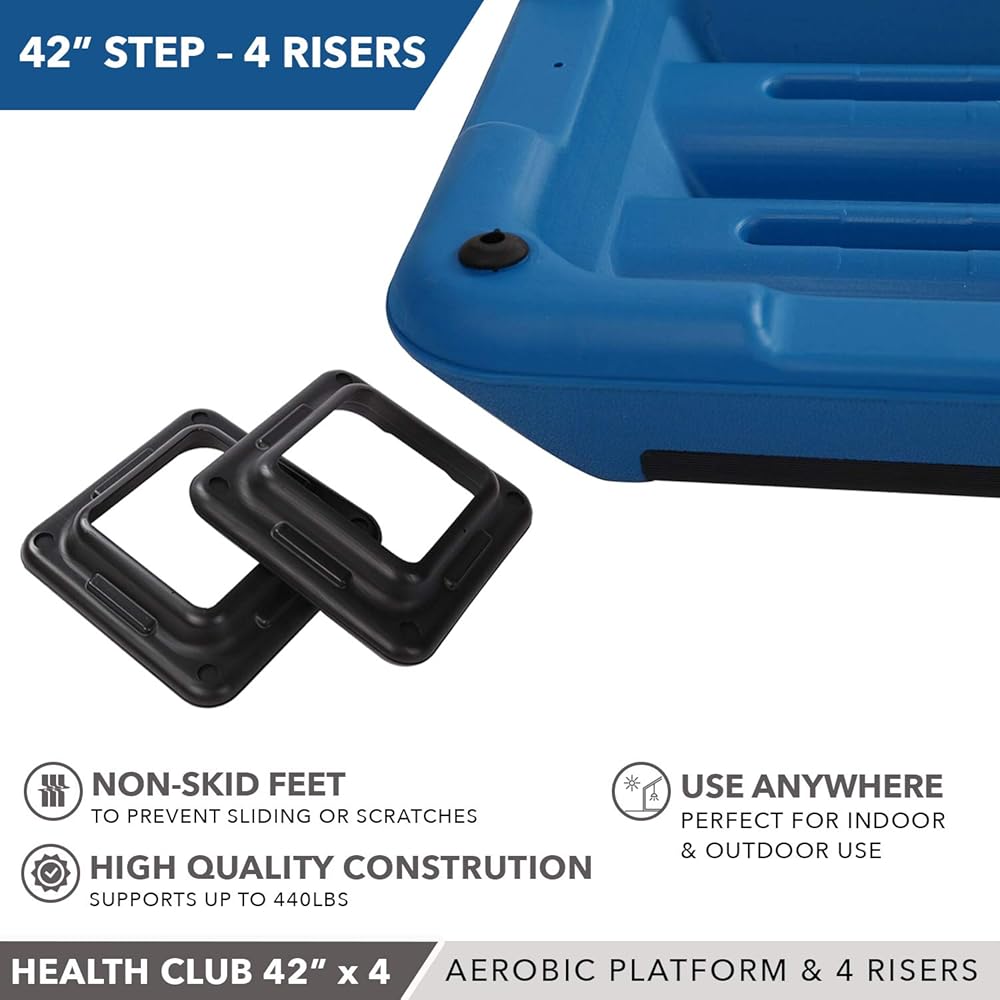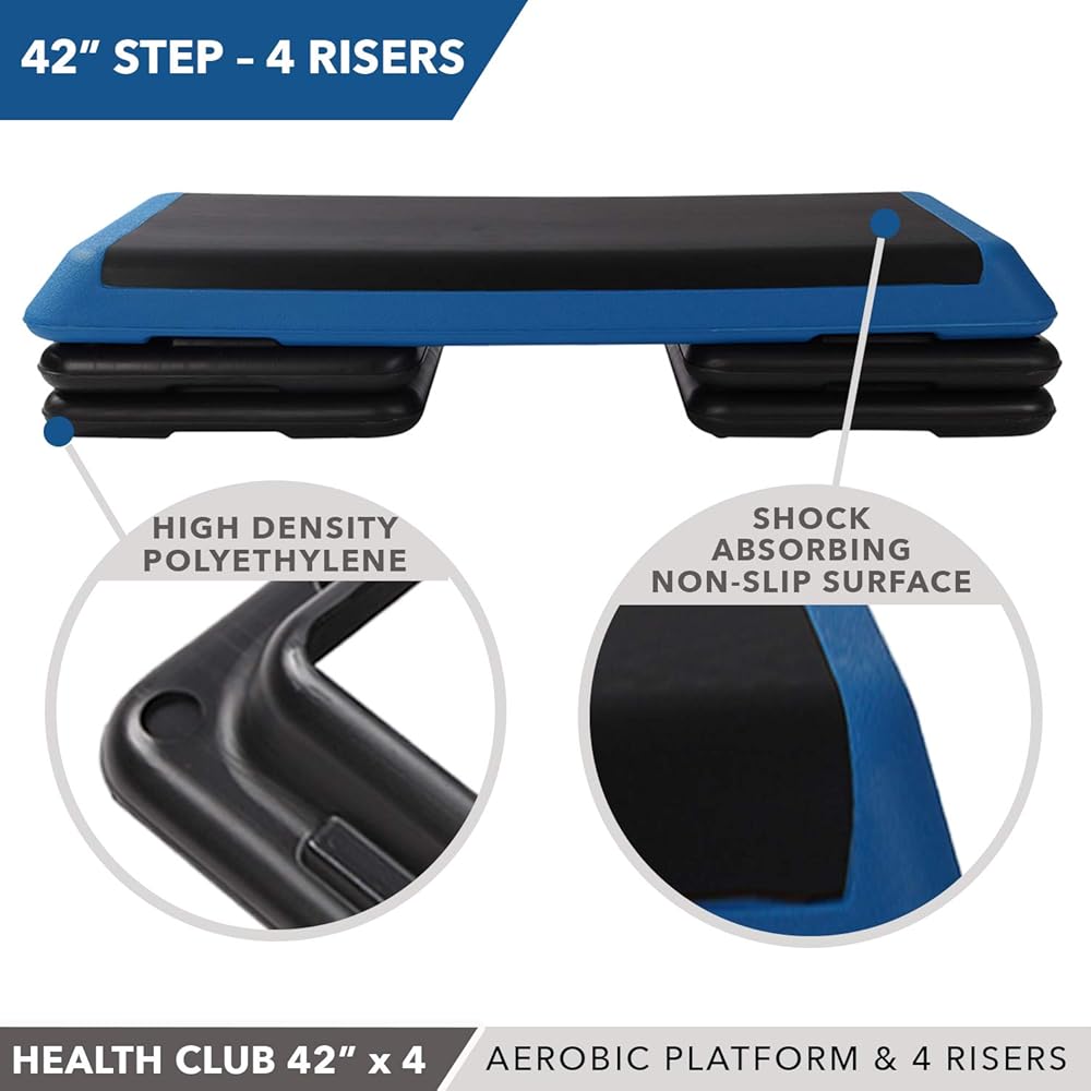 منصة خطوات للنادي الصحي مقاس 42 بوصة × 14 بوصة: تتميز بسطح غير قابل للانزلاق بعرض 42 بوصة × 14 بوصة، ويمكن نقلها بأمان من خطوة إلى أخرى بسهولة، وتوفر القاعدة المقاومة للانزلاق تجربة تمرين ممتصة للصدمات من أجل تدريبات منخفضة وعالية التأثير