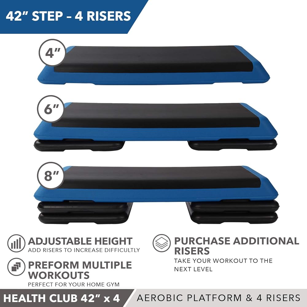 كثافة التمرين قابلة للتعديل بسهولة: قم بزيادة أو تقليل شدة التمرين بسرعة عن طريق ضبط ارتفاع المنصة، 4 رافعات متضمنة توفر القدرة على التغيير من 4 بوصة و6 بوصة و8 بوصة، مثالية لأي مستوى لياقة بدنية.