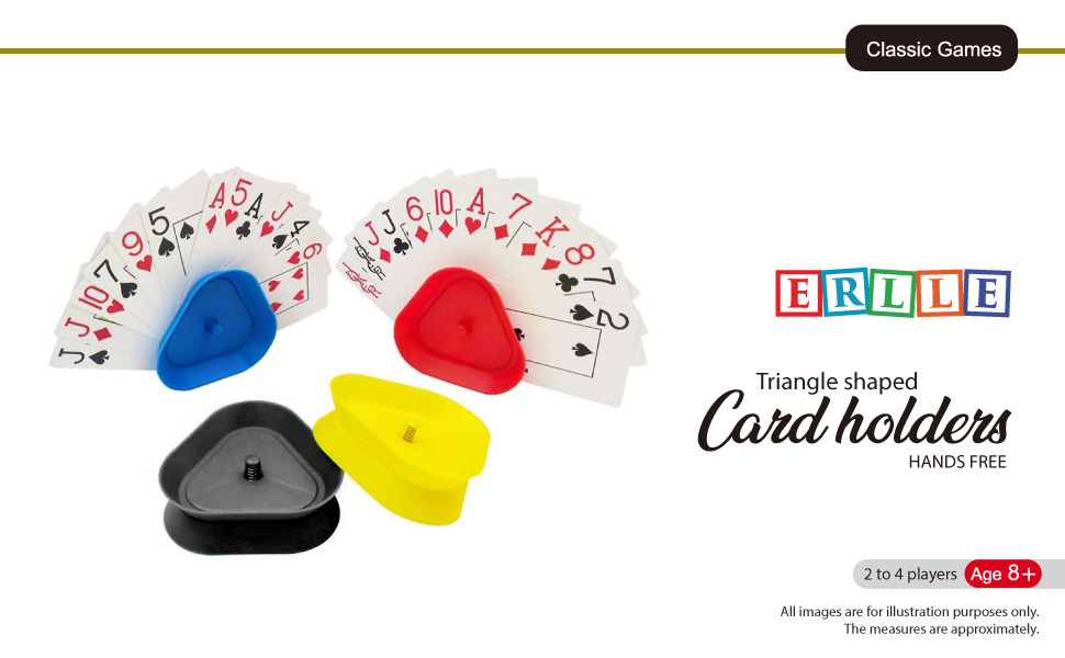 حاملي بطاقات اللعب على شكل مثلث هو الحل. كل حامل بطاقة له لون مختلف، وهو أمر مفيد للألعاب التي تضم لاعبين متعددين. تحتوي كل مجموعة على إجمالي أربعة حاملين.