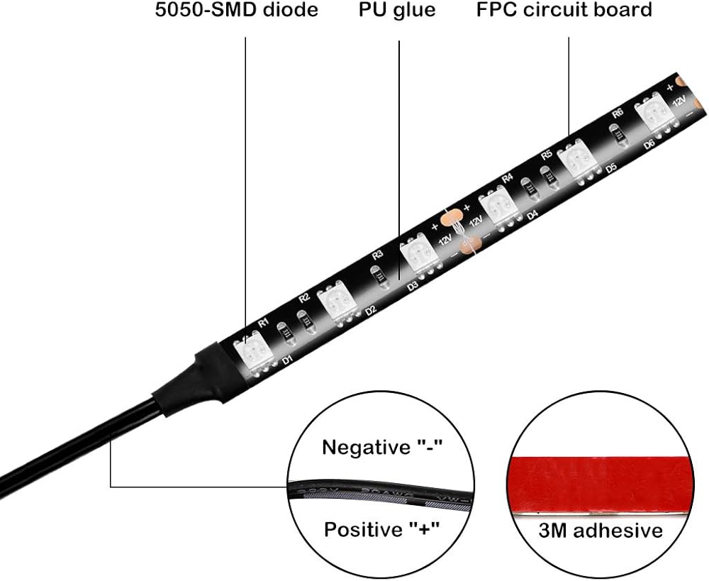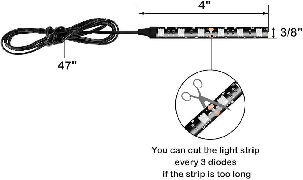 سهل التركيب: اتصال سلكين بطول 47 بوصة مع الموجب والسالب، سهل جدًا. لاصق 3M فائق على الجزء الخلفي من شريط الضوء تأكد من تثبيته على السطح النظيف والأملس. كما يمكنك قصه كل 3 صمامات ثنائية إذا كان الشريط طويل جدا.