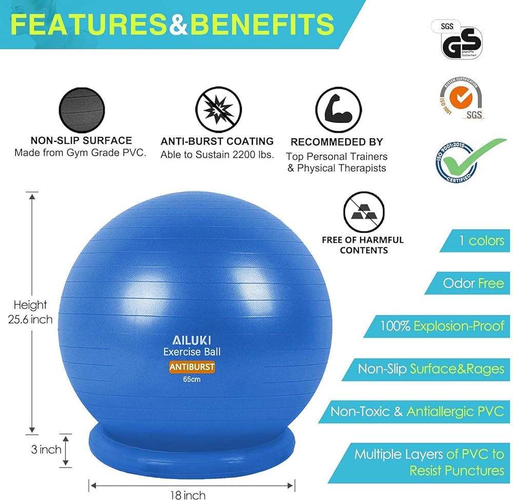 استخدامات متعددة: كرة اللياقة البدنية هذه مثالية لليوجا، والبيلاتيس، وتمارين البطن، وجمباز الحمل، وضغطات الصدر، والمضغ، والتدريب الأساسي وغيرها من التمارين. يمكن استخدامها في كرة التمرين، وكرة الولادة، وكرة اللياقة البدنية، وكرة الاستقرار، وكرة التوازن، وكرة اليوجا. وسوف تساعد على التخلص من آلام الظهر، وتقوية عضلاتك الأساسية، وتحسين وضعك، وتعزيز التنسيق والتوازن وفقدان الوزن.