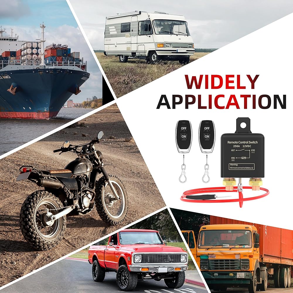 تطبيق واسع: يمكن لمفتاح التحكم عن بعد 12 فولت حل مشكلة نفاد البطارية بسهولة مع حماية الدائرة، وهو مناسب للسيارة والشاحنات والقوارب والمركبات الترفيهية ومقطورة السفر.