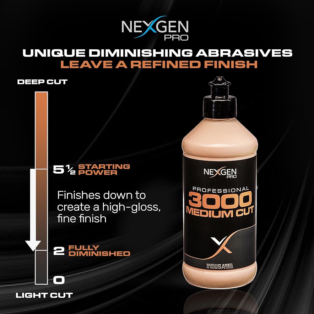 Nexgen Pro 3000 قطع متوسط 16 أونصة | مزيل خدوش السيارة الآمن من بودي شوب | خالي من الحشو، صنع في الولايات المتحدة الأمريكية، مواد كاشطة متخصصة للتقليل | مزيل خدوش مائي للمركبات