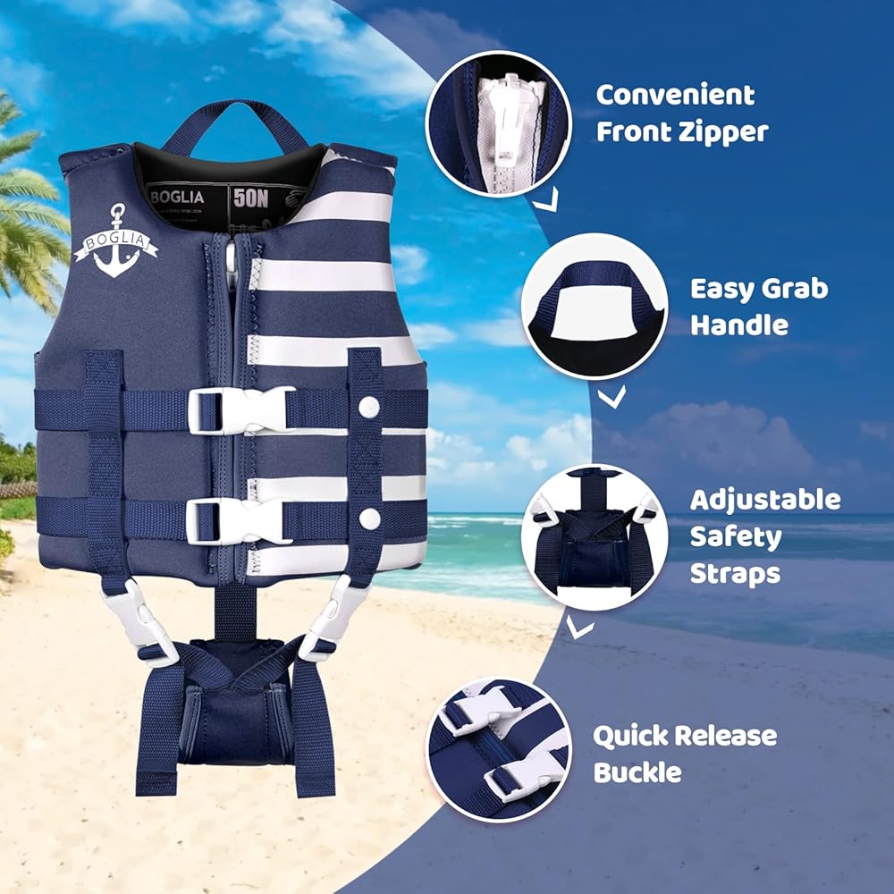 المزيد من الأمان - سحاب أمامي كامل لسهولة الارتداء والخلع. نمط السترة، يلتف حول جذع الطفل ويبقي الذراعين حرتين للسباحة. تحتوي سترة الطفو الخاصة بنا على أحزمة أمان قابلة للتعديل عند الخصر وتحت ورك الطفل. مشبك التحرير مصنوع من مادة قوية جدًا، ويُعتقد أنه يمكن أن يكون متينًا للاستخدام طويل الأمد.
