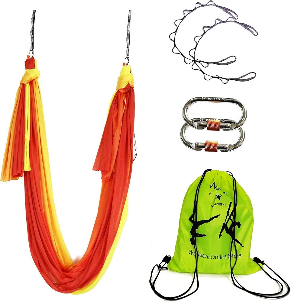 1. جودة معتمدة --- ألوان جديدة، أرجوحة اليوجا الجوية من WELLSEM مصنوعة من مواد وأجهزة معتمدة عالية الجودة: قطعة واحدة بطول 5.5 ياردات 40-Denier نايلون تريكو أرجوحة هوائية مرنة، قطعتان من حلقات التثبيت القوية 23KN، قطعتان من سلاسل ديزي من النايلون المقوى بطول 10أقدام 23KN ، تم تصنيف Yoga Hammock Max لحمل ديناميكي يصل إلى 2000 رطل. سلاسل Daisy وCarabiners كلها معتمدة وفقًا لمعايير التسلق.