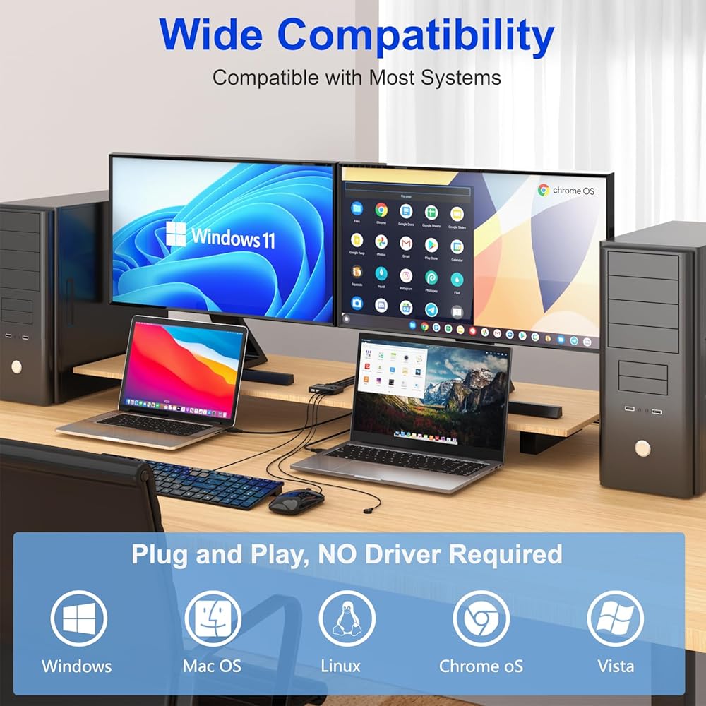 توافق واسع وخالي من برامج التشغيل: محدد محول USB 3.0 هو التوصيل والتشغيل لأجهزة الكمبيوتر التي تعمل بنظام التشغيل Windows وmacOS وChrome OS. التوصيل والتشغيل، لا يحتاج إلى سائق.