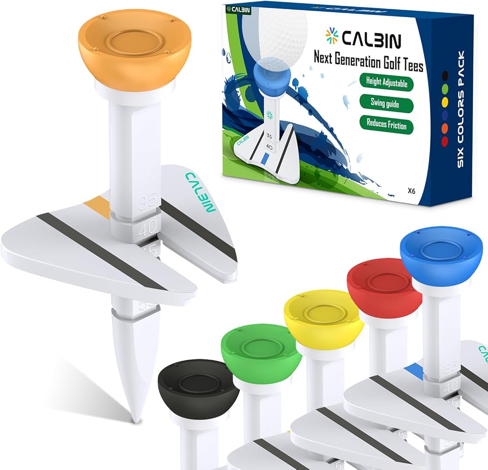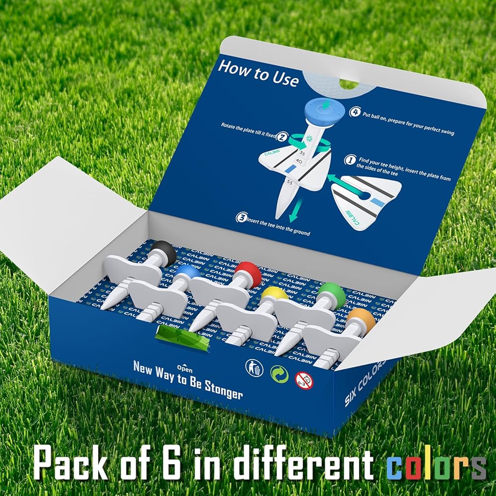 تي شيرتات الجولف - تيشيرتات الجولف من الجيل التالي مع ارتفاع قابل للتعديل ودليل مرئي متأرجح، تيشيرتات جولف بلاستيكية متينة للاستخدام المتعدد، ملحقات جولف للرجال (عبوة من 6 قطع)