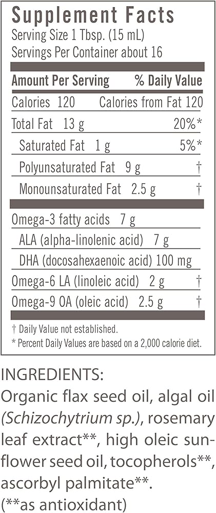 The finest flavor and quality. Flora' Flax Oil is pressed from certified organic flaxseed (third party certification) that has been carefully selected for flavor and maturity. The seeds are pressed in a state-of-the-art low heat light and oxygen free environment then bottle in light resistant amber glass to ensure maximum nutritional value and freshness. Flax Oil' omega 3 and omega 6 Essential Fatty Acids (EFAs) are important for immune system development healthy brain function good muscle tone and a strong circulatory system. EFAs also help keep your skin soft and smooth. Flora' high standards also guarantee their product to be GMO free.