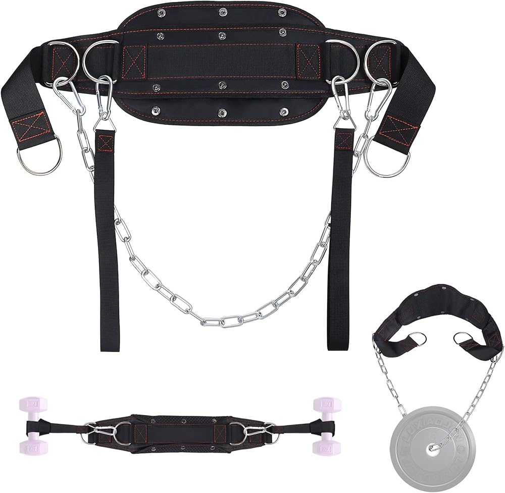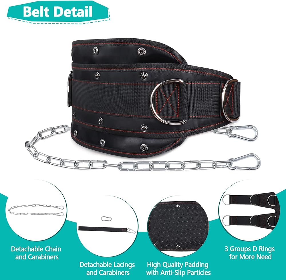 حزام تراجع وحزام دفع الورك، حزام اللياقة البدنية 2 في 1 من أتشويشاب لرفع الأثقال في صالة الألعاب الرياضية، والسحب، والقرفصاء ودفع الورك، وحزام تمرين مع سلسلة، وحلقات على شكل حرف D، وعرض قابل للطي لاحتياجات متعددة