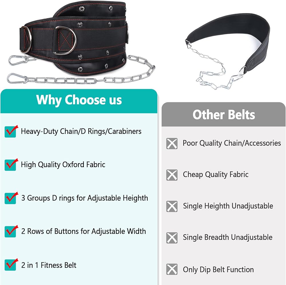 [حزام غمس بارتفاع 3 تروس] يتميز حزام الغمس هذا بتنوع أفضل من غيره مع سلاسل قابلة للتعديل ونقاط اتصال متعددة. يبلغ طوله 29 بوصة وعرضه 6.7 بوصة، ويتميز بثلاث مجموعات من الحلقات على شكل حرف D لدعم ارتفاع 3 تروس، وهو طول كبير ويمكن أن يجعل الوزن يتدلى بعيدًا بما يكفي عن الركبتين لتجنب الاصطدام والاحتكاك المتكرر.