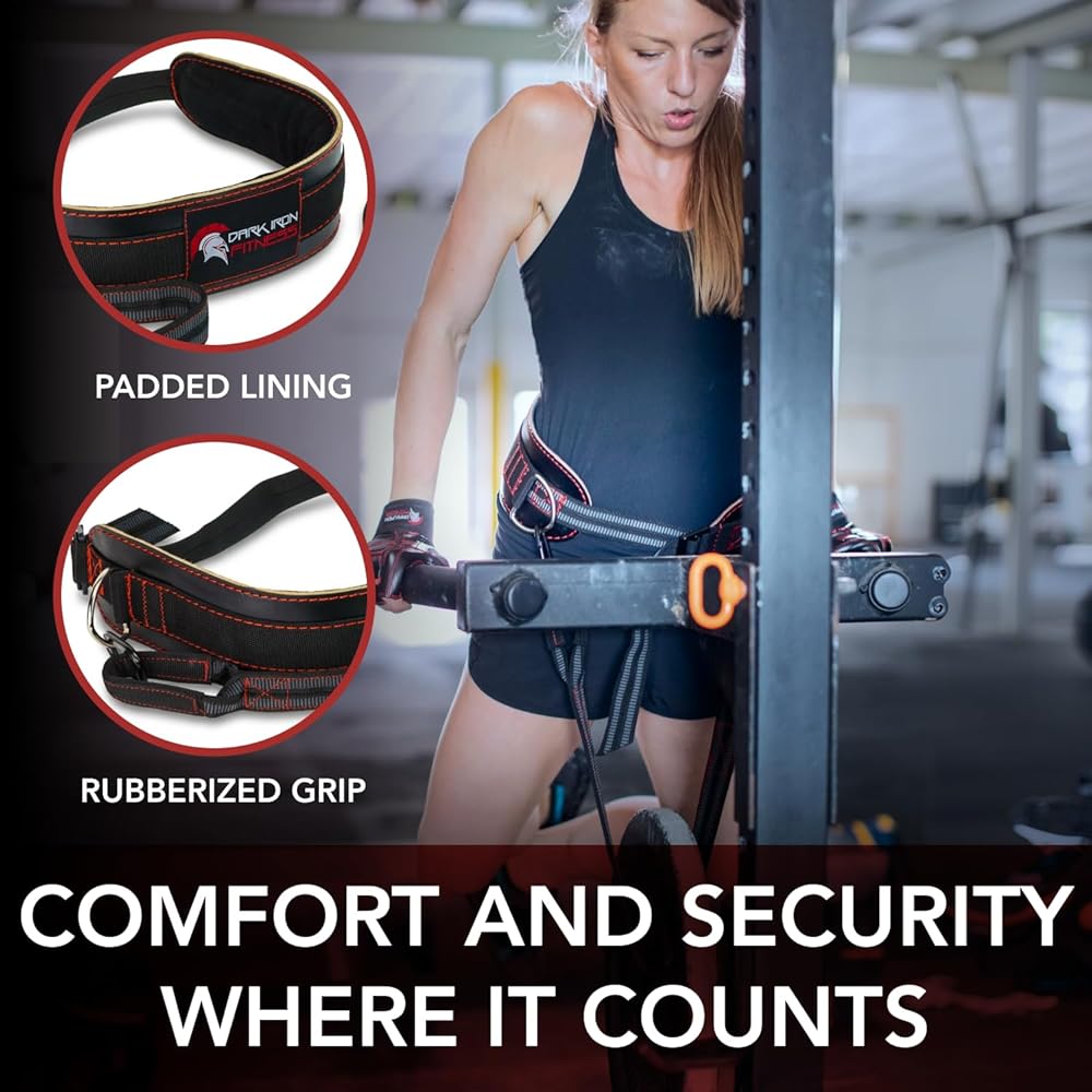 حزام تراجع اللياقة البدنية من الحديد الداكن - أحزمة رفع الأثقال الجلدية المبطنة مع حزام 40 بوصة للقرفصاء والسحب - رفع الأثقال للرجال والنساء حتى 270 رطلاً