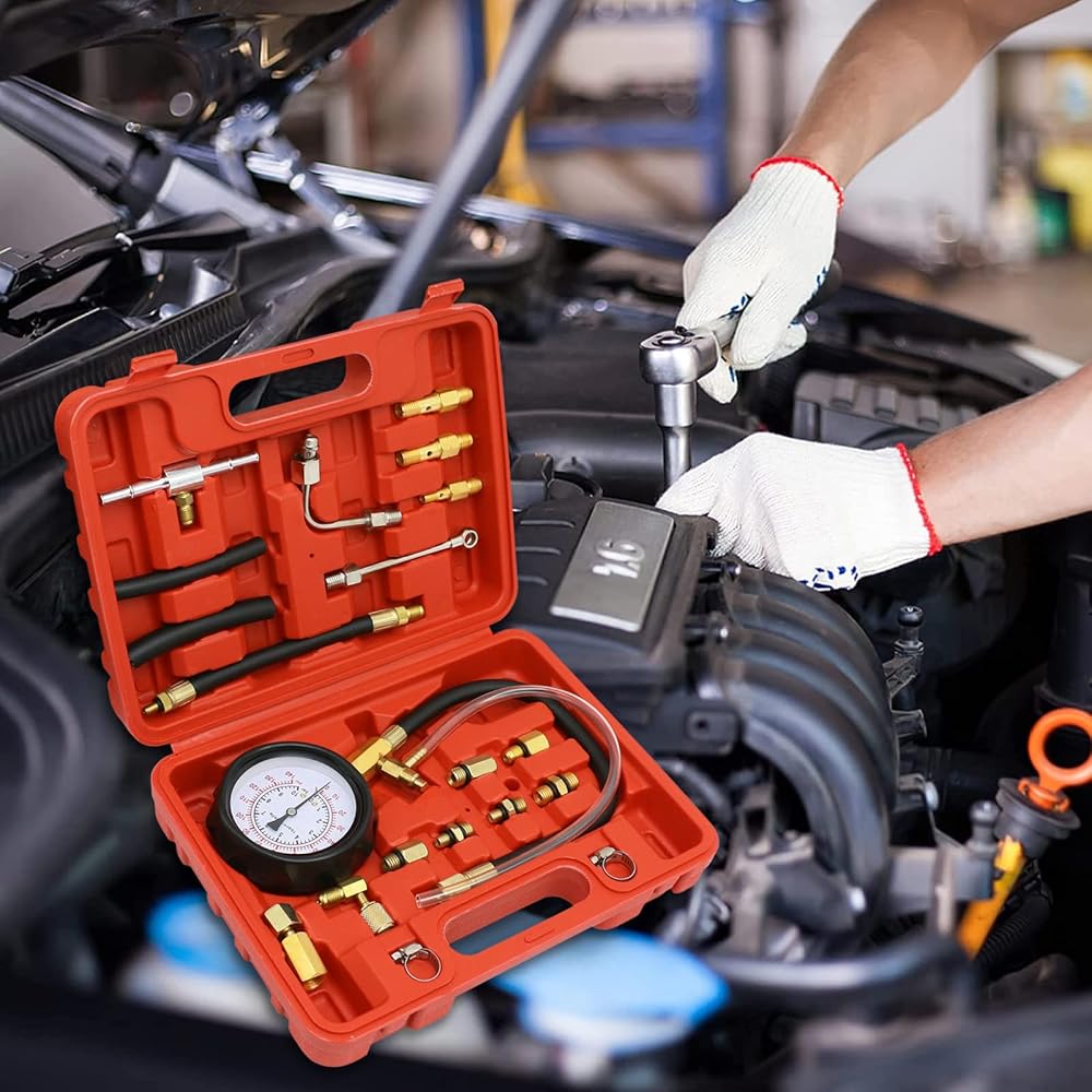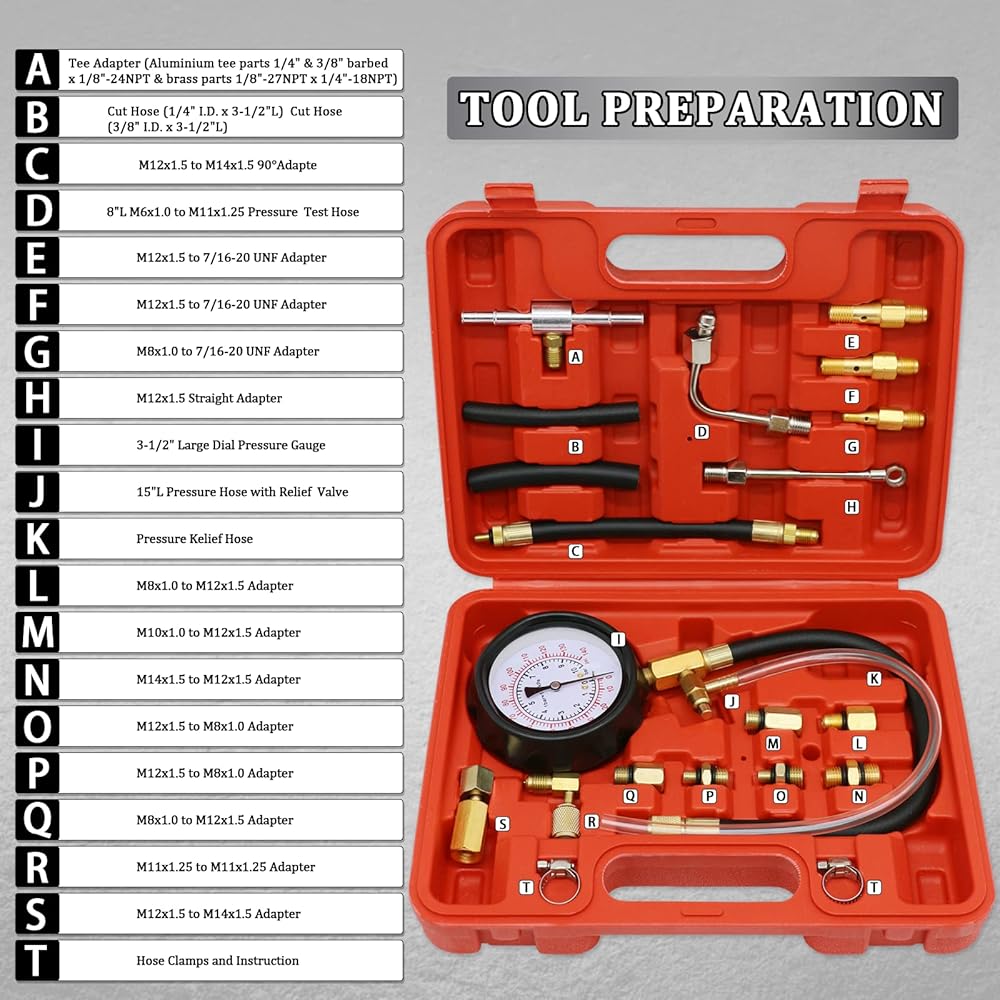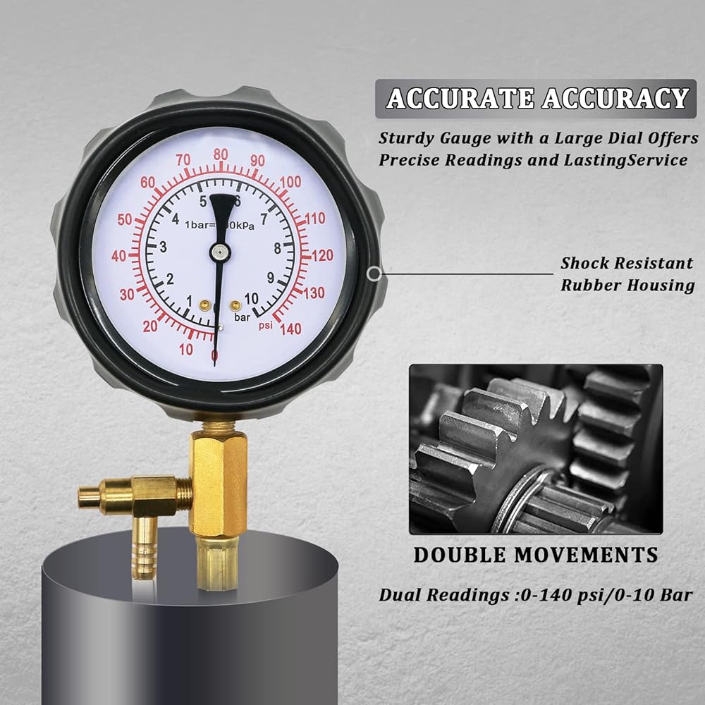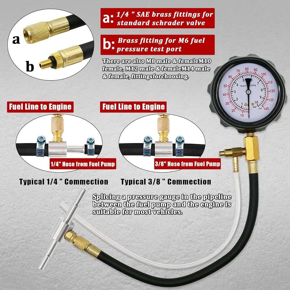 مجموعة اختبار ضغط الوقود 0-140 رطل لكل بوصة مربعة، TU-114 أداة اختبار ضغط مضخة حقن الوقود أداة السيارات مع محول قياس لنظام حقن الوقود لمنفذ اختبار شريدر على دراجة نارية السيارة