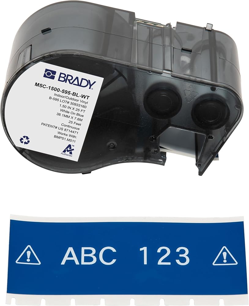 Make labels that withstand up to 10 years of outdoor abuse with this low-shrink vinyl label material (B-595). Print almost anywhere with a durable Brady handheld label maker.