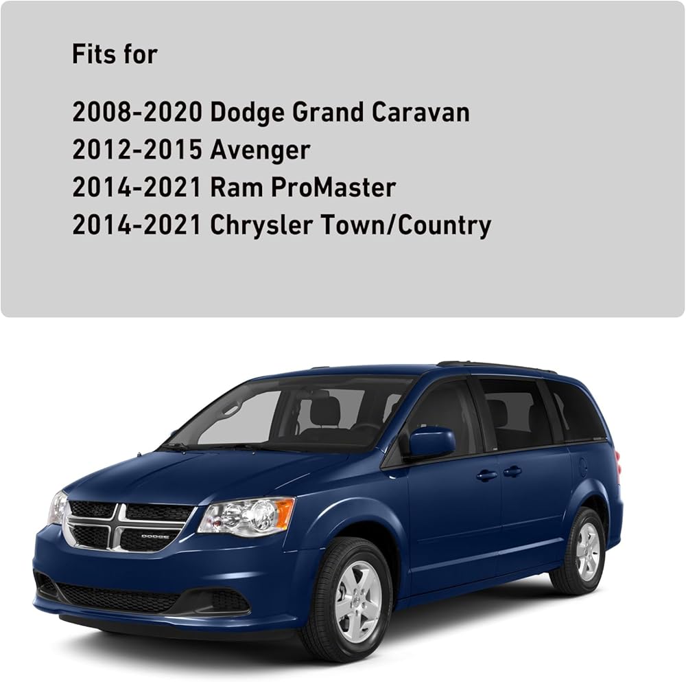 • 【Compatible With】Fit For Chrysler 2011-2014 200; 2007-2008 Pacifica, Chrysler 2007-2010 Sebring. Dodge 2008-2014 Avenger, Dodge 2008-2020 Grand Caravan; 2009-2019 Journey. Ram 2012-2015 C/V; 2014-2021 ProMaster 1500; 2014-2021 ProMaster 2500; 2014-2021 ProMaster 3500.