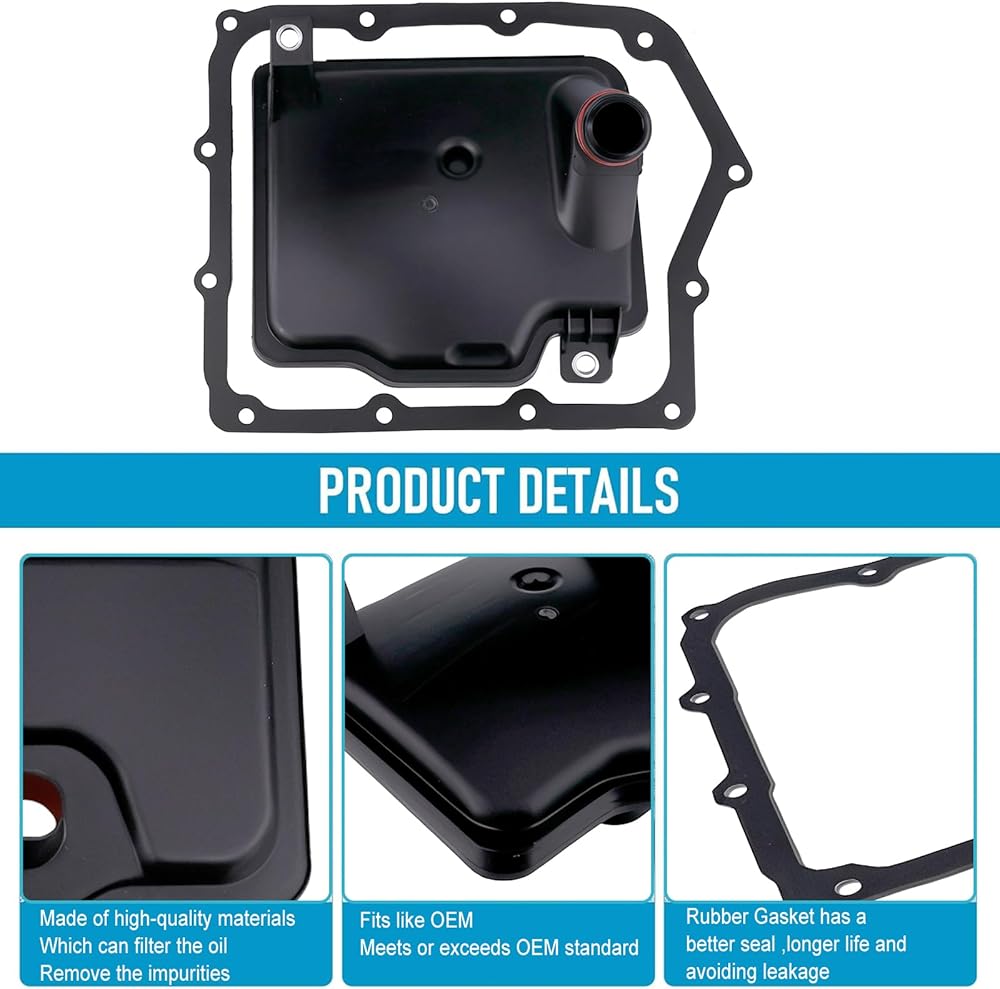 • 【Package】1x automatic transmission filter 1x gasket.Regular replacement of the transmission filter is recommended,by changing the transmission filter regularly,the life of the transmission will be extended and expensive repairs will be avoided.
