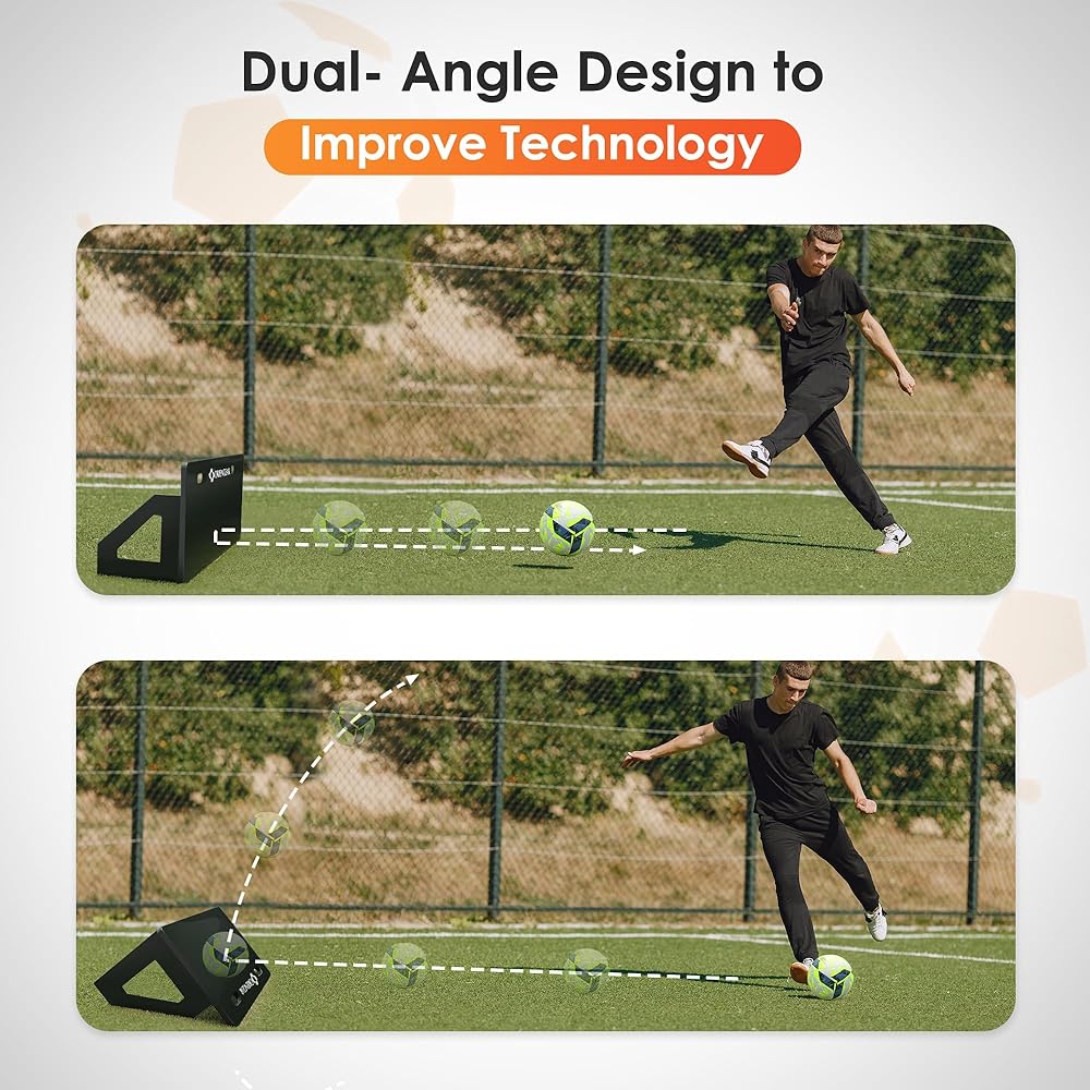 ⚽ جهاز ارتداد مزدوج الزاوية: يمكن تغيير زاوية جهاز ارتداد كرة القدم القابل للتعديل هذا ليناسب تمارين التدريب المحددة. يمكنك تحسين التحكم بالكرة والتمرير بالزاوية العمودية. يوفر قلب اللوحة تسديدة جوية.