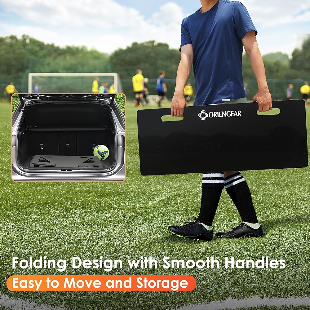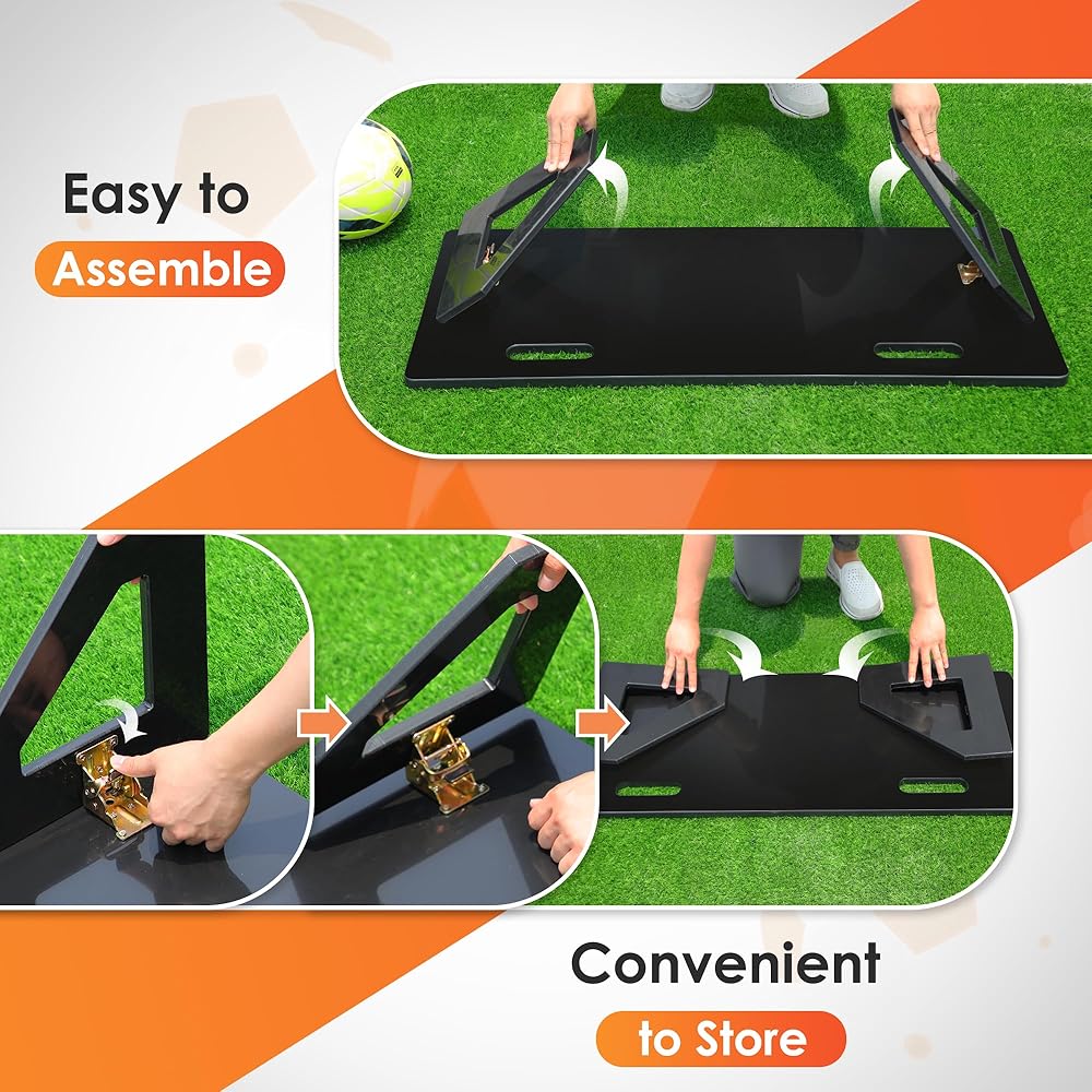 ⚽ سهلة التجميع والتخزين: أرجل قابلة للطي وتصميم موفر للمساحة لسهولة التخزين والنقل والإعداد السريع. يمكنك التعامل مع لوحة كرة القدم وحملها بسهولة. استخدم مدرب كرة القدم المحمول الخاص بنا لأداء ممارستك في أي مكان.