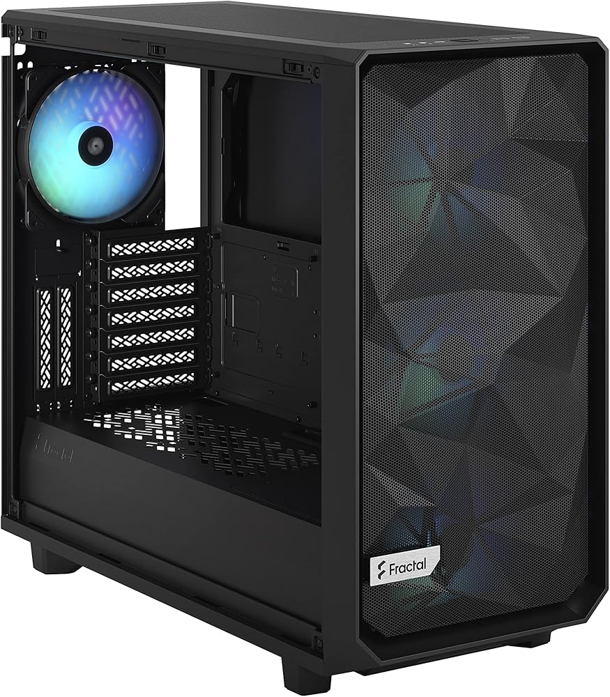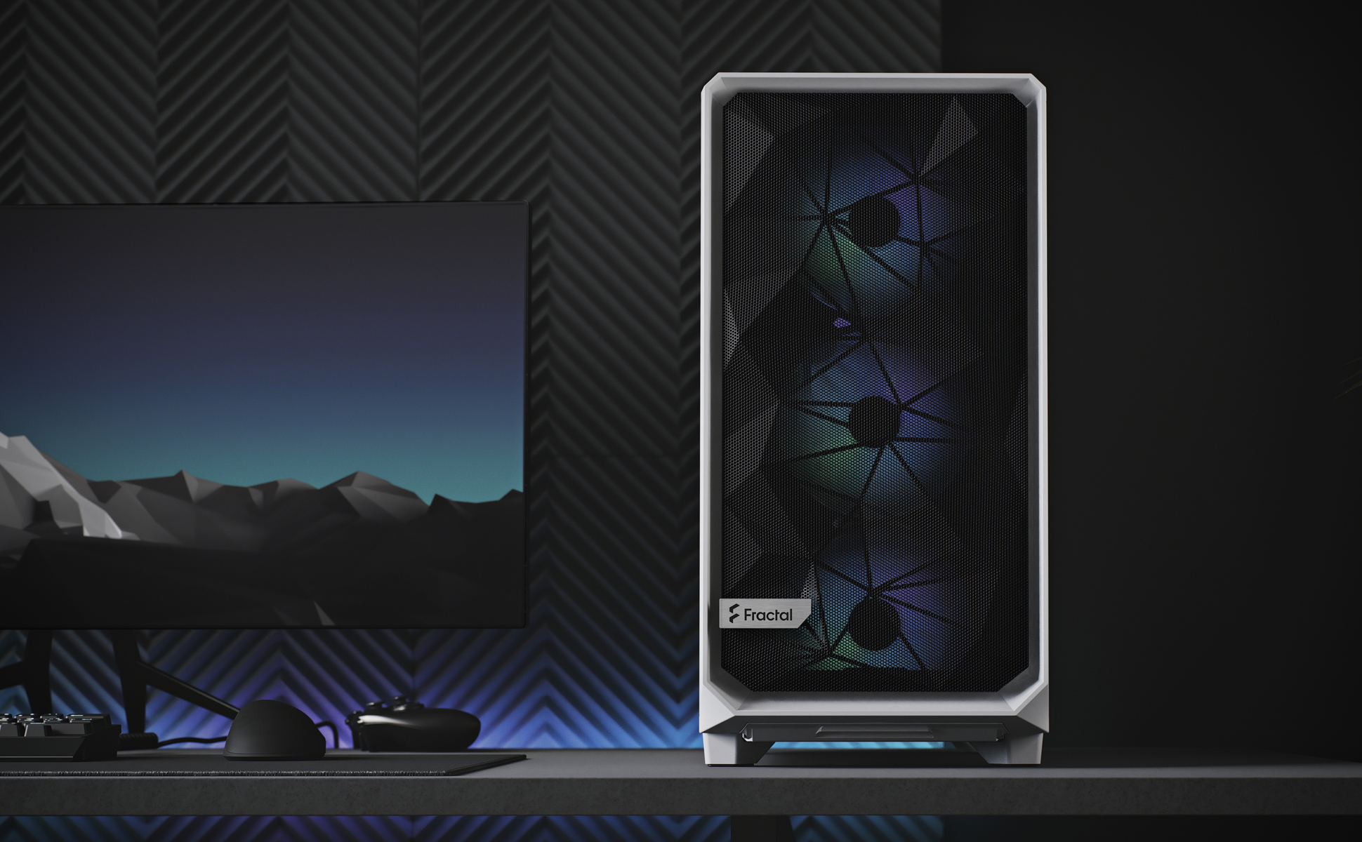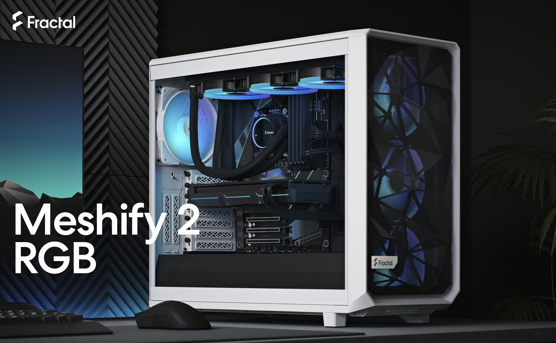The Meshify 2 RGB is a high-performance case with a bold, stealth-inspired aesthetic. Its striking exterior features bolt-free, flush tempered glass, a fully removable top granting excellent interior access, and a front with USB-C, hinged mesh panel and removable nylon filter. The flexible dual-layout interior supports large storage arrays and multi-radiator setups that makes cooling a breeze.