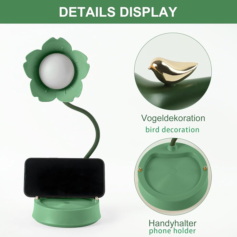 مصباح مكتبي لطيف تصميم مصابيح الطاولة في هذه السلسلة مستوحى من الغابات والزهور والطيور. يحتوي مصباح الطاولة على 4 ألوان، يمكن استخدامها كإضاءة ليلية صغيرة، أو إضاءة ليلية صغيرة، أو إضاءة للقراءة أو إضاءة تزيينية في غرفة النوم وغرفة المعيشة. إنها مناسبة بشكل خاص كهدية للأطفال والأصدقاء.