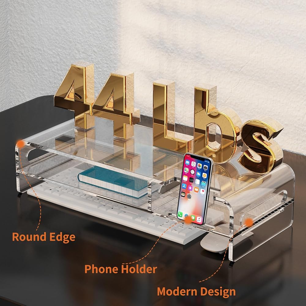 تصميم مريح: حامل الشاشة الأكريليك هذا مع مساحة تخزين يرفع الشاشة إلى ارتفاع 4.5 بوصة، مما يحافظ على الشاشة على ارتفاع مريح مريح لمنع آلام الظهر والرقبة.