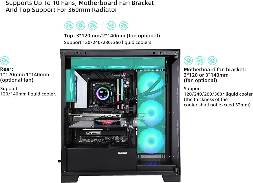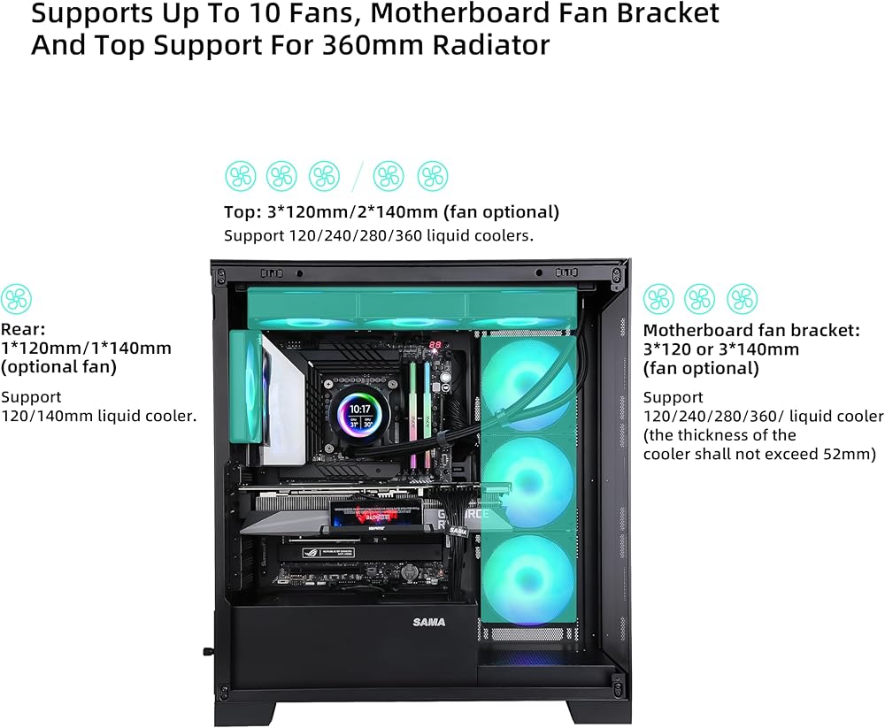 دعم علوي للرادياتير 360 مم، مراوح 7 × 120 مم / 6 × 140 مم (مثبتة مسبقًا بمراوح ARGB)