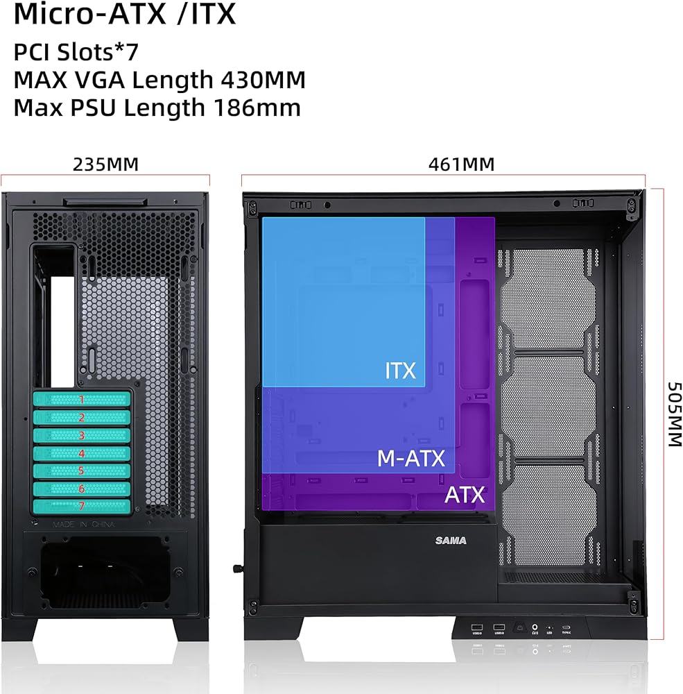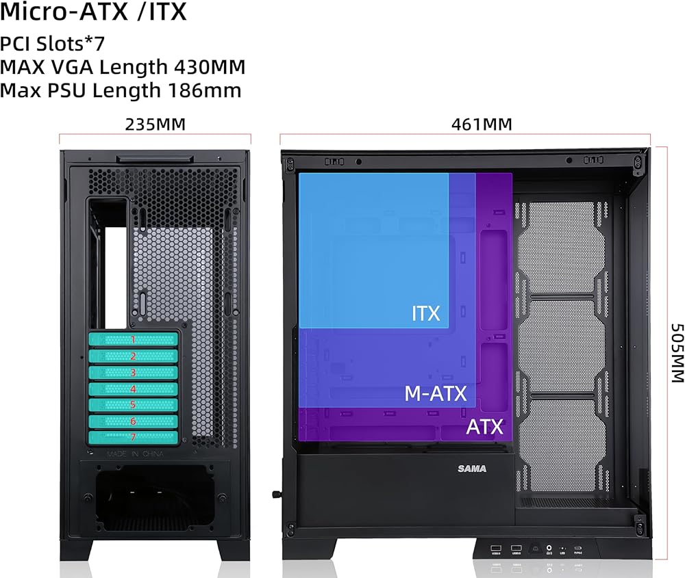 دعم أحدث المكونات الخلفية ATX/M-ATX/ITX اللوحة الأم، الحد الأقصى لطول وحدة معالجة الرسومات 430 مم، الحد الأقصى لارتفاع وحدة المعالجة المركزية 183 مم، دعم اللوحة الأم EATX/ATX/M-ATX/ITX