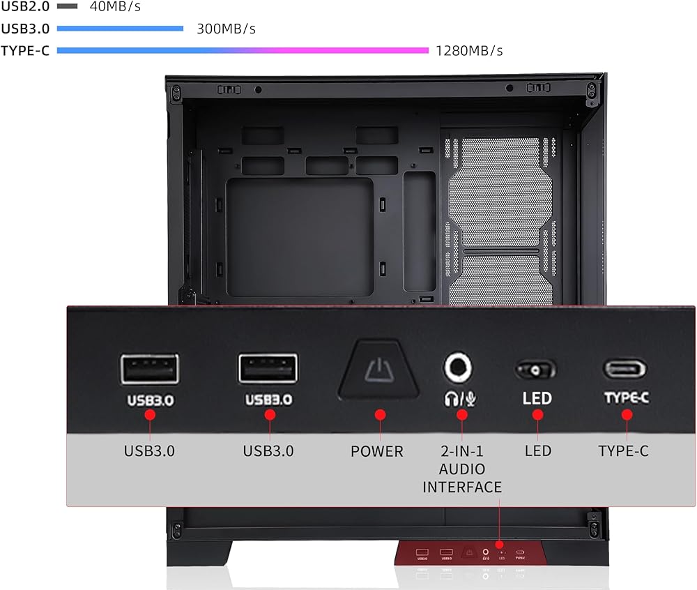هيكل سريع وسهل الفك والتجميع، موضع مكون l/O قابل للتعديل، واجهة USB3.0*2 TYPE-C*1 عالمية