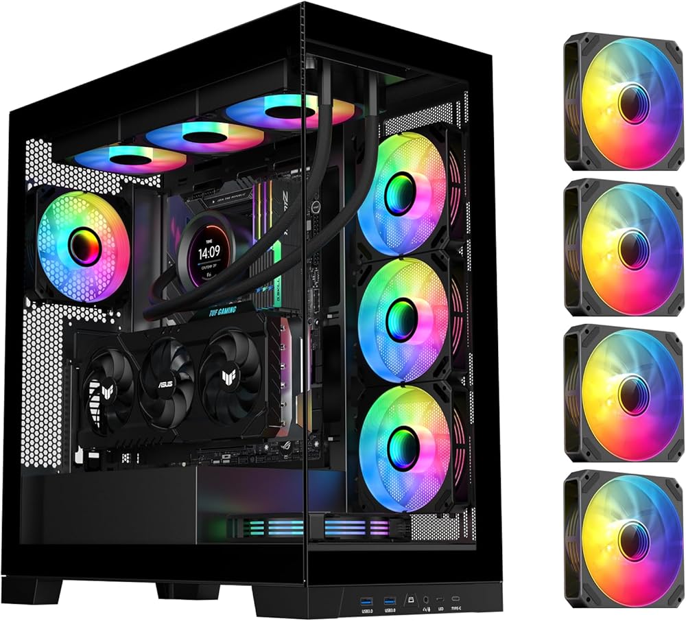 قم بالتثبيت المسبق لـ 4 منافذ عالمية لمحور ARGB، وقم بالتثبيت المسبق لـ 4 مراوح ARGB مع موصلات عالمية