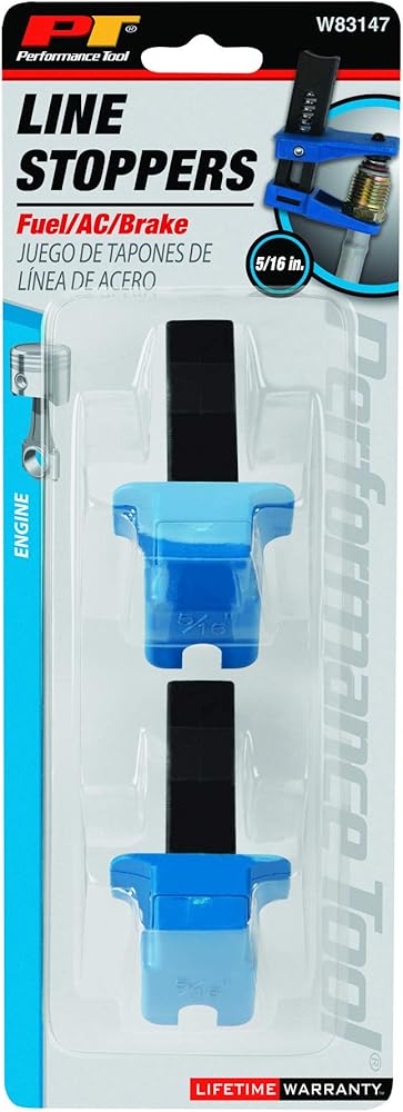 The Performance Tool Prevent Fluid Leaks tool is a must-have for anyone working on vehicles. This tool makes fluid line maintenance easy, preventing messy and costly fluid leaks while replacing or working on components that use fluid transfer lines, such as brake, A/C, and fuel lines. With universal compatibility and fitting 5/16 in. ID lines, it's an essential addition to any automotive or DIY tool kit. The spring-loaded design allows for quick and easy installation and removal, minimizing hassle. Made from high-quality materials, the Prevent Fluid Leaks tool is durable and built to last, withstanding the wear and tear of frequent use in automotive and DIY applications. Two stoppers are included with the tool that fit 5/16 in. ID lines, ensuring a proper and secure seal. Don't let fluid leaks slow you down - add the Performance Tool Prevent Fluid Leaks tool to your toolbox today!