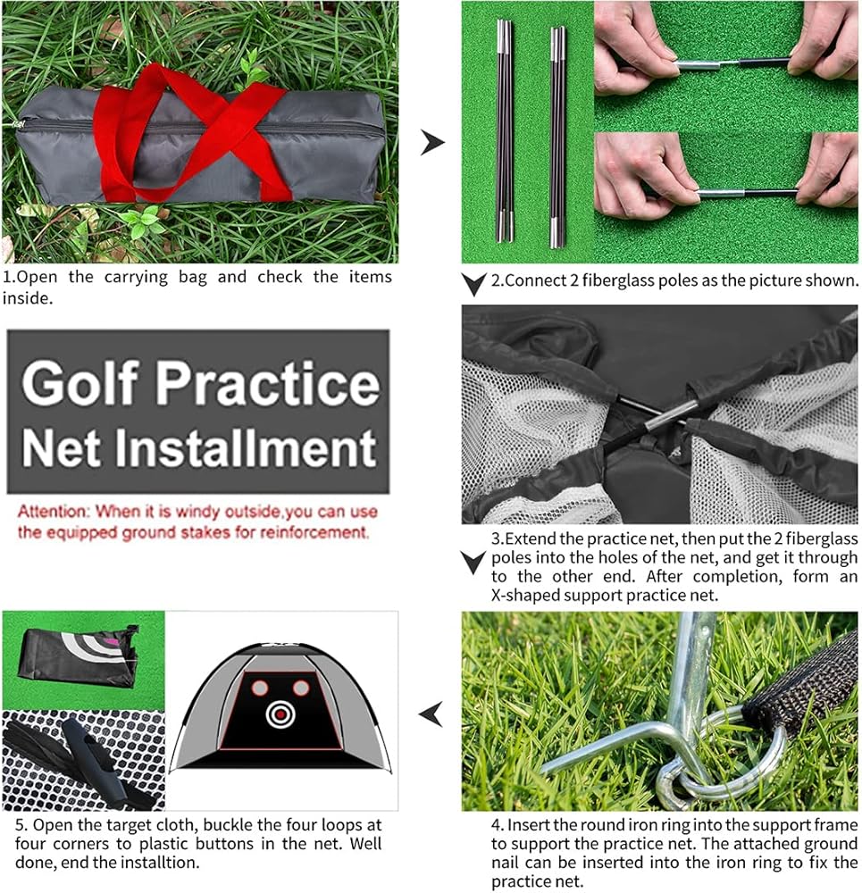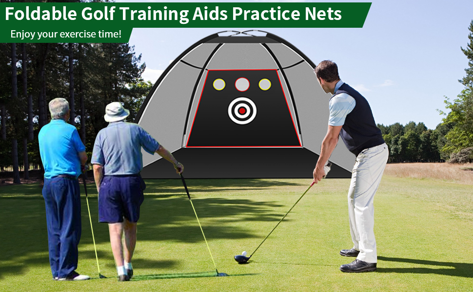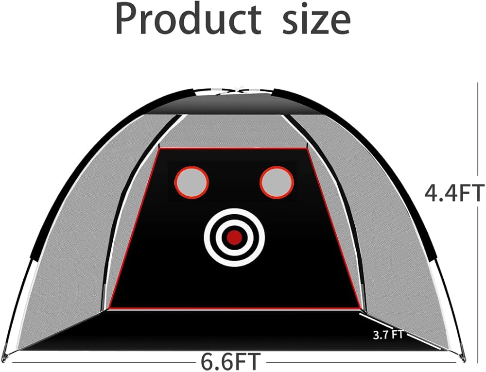 حجمان: 6.6 قدم: 6.6 قدم (طول) × 3.3 قدم (عرض) × 4.6 قدم (ارتفاع)، 9.8 قدم: 9.8 قدم (طول) × 5.9 قدم (عرض) × 6.6 قدم (ارتفاع). مجموعة متنوعة من الأساليب لتختار. وتشمل العبوة شبكة جولف واحدة، و1 أداة مساعدة لاستهداف الجولف، وحقيبة حمل واحدة، وعمودين من الألياف الزجاجية، و4 أوتاد أرضية.