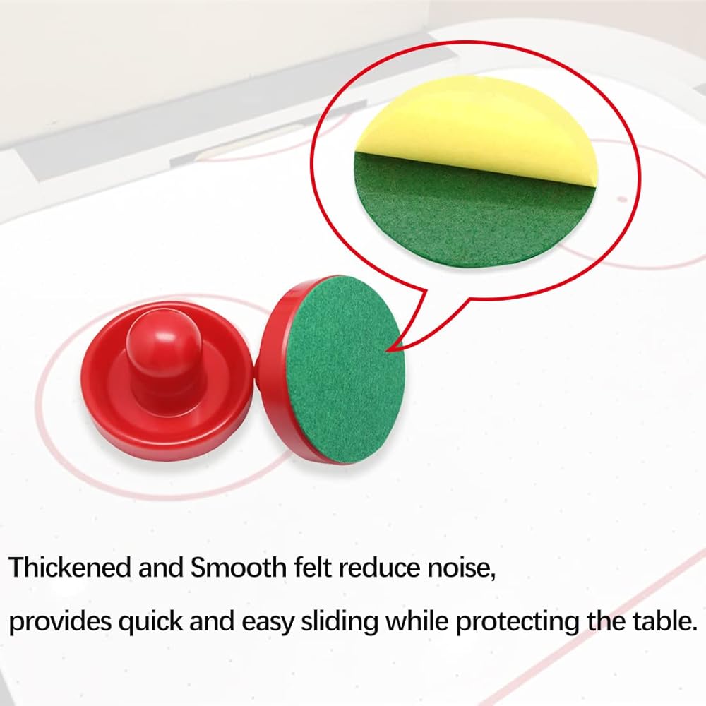 【جودة عالية】الدفعة والقرص مصنوعان من البلاستيك عالي الجودة، والفانيلا مصنوع من اللباد الأخضر السميك، ويقلل الضوضاء والانزلاق السلس. مثالي لاستبدال أي معدات هوكي هوائي قديمة أو مفقودة!