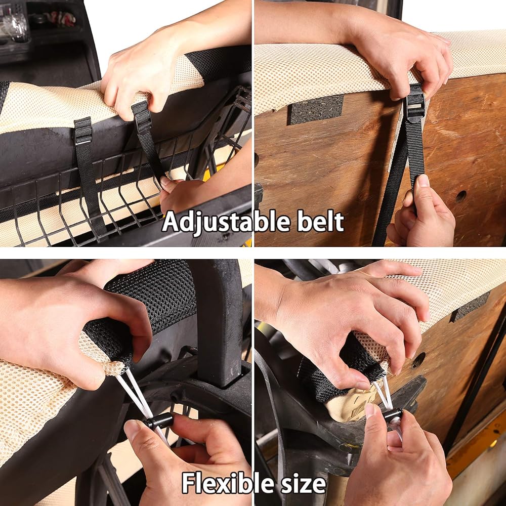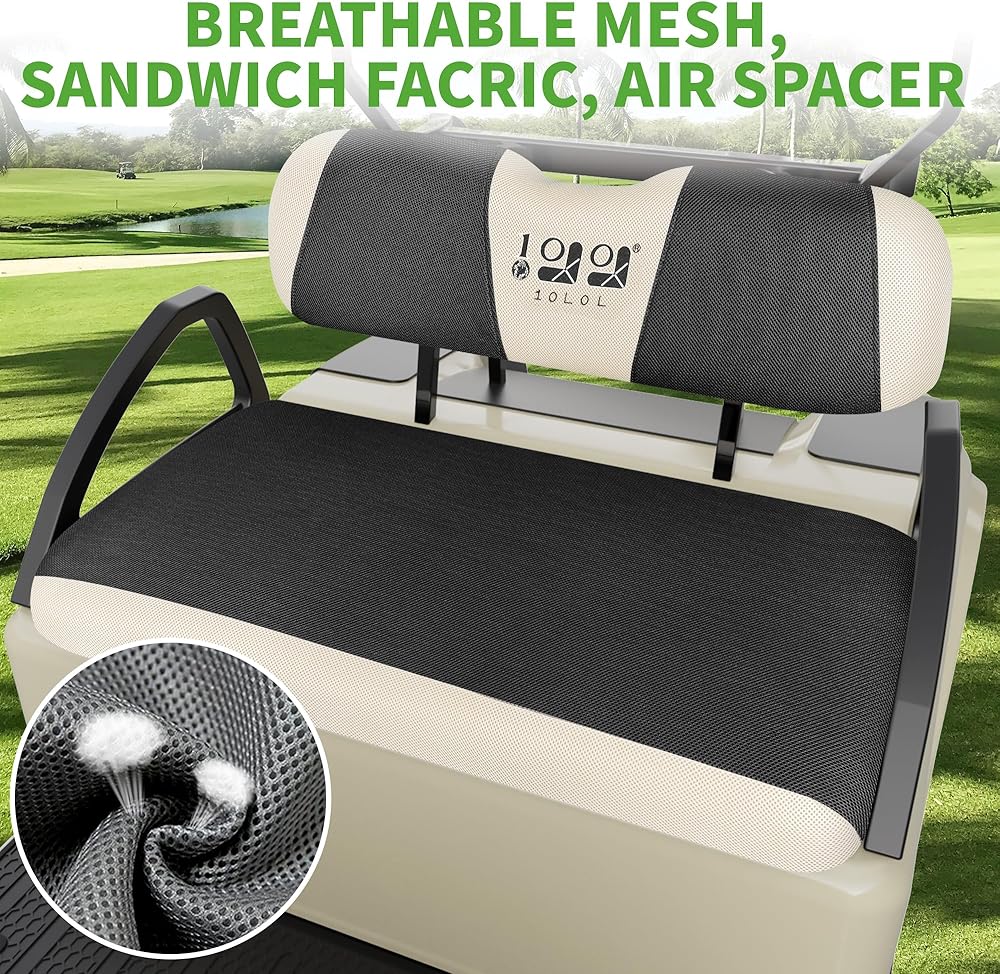 نسيج متين قابل للتمدد: أغطية مقاعد عربة الجولف الخاصة بنا مصنوعة من قماش شبكي متين ومريح وجيد التهوية وبوليستر لتوفير أقصى قدر من الراحة أثناء قيادتك اليومية، وهي عالمية لجميع المواسم - سهلة التنظيف، ويمكن غسلها في الغسالة، وتجفيفها بالهواء.