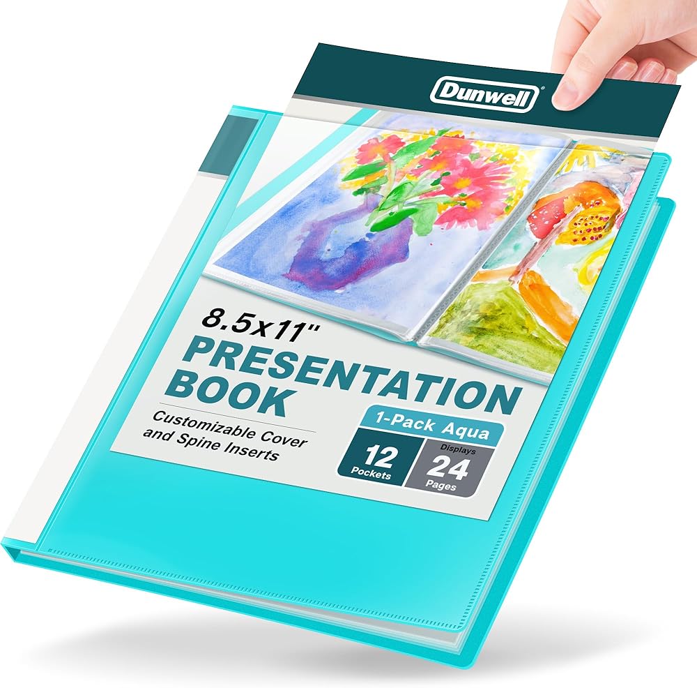 مجلد Dunwell بأكمام بلاستيكية 12 جيبًا (أكوا) - كتاب عرض تقديمي، مجلد محفظة 8.5 × 11 مع واقيات أوراق شفافة، يعرض مستندات وشهادات وأوراق مهمة من 24 صفحة