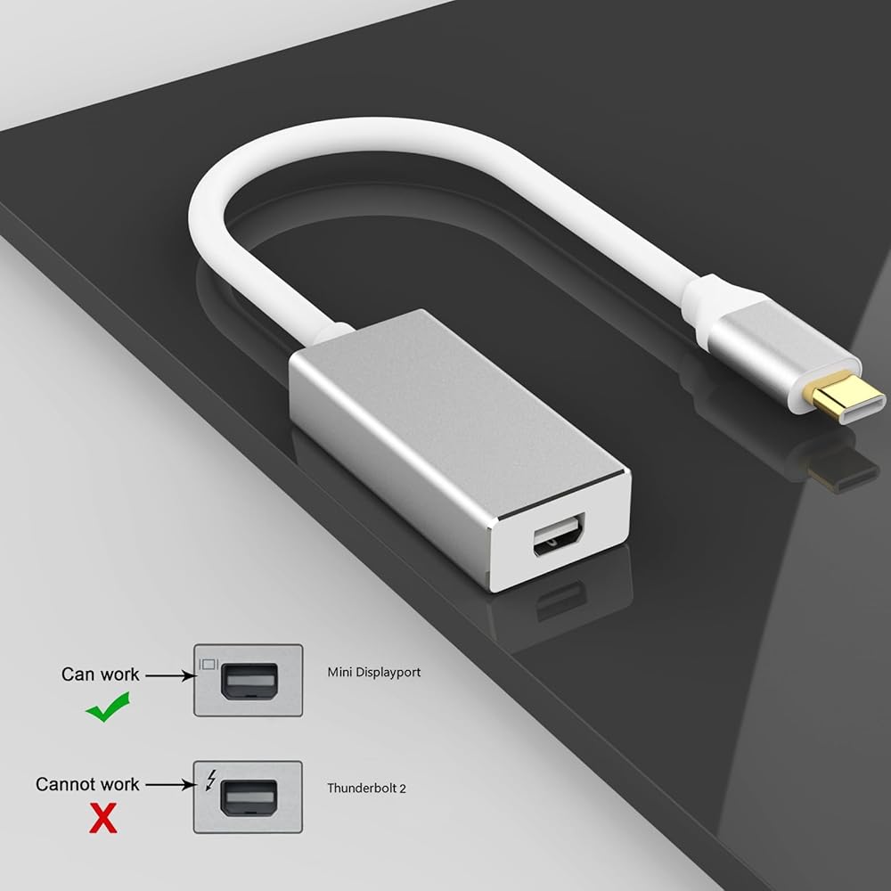 هذا المحول من USB-C إلى Mini dp غير متوافق مع الشاشات أو الأجهزة التي تحتوي على منافذ Thunderbolt 2.