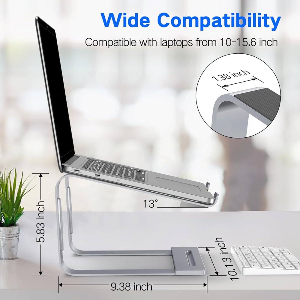 ✅[توافق واسع]: يتوافق حامل الكمبيوتر المحمول الخاص بنا مع جميع أجهزة الكمبيوتر المحمولة من 10 إلى 15.6 بوصة، مثل MacBook Air/ Pro، وDell XPS، وHP، وASUS، وGoogle Pixelbook، وLenovo ThinkPad، وAcer، وChromebook وMicrosoft Surface، إلخ. رفيقك المثالي في المنزل والمكتب والخارج.