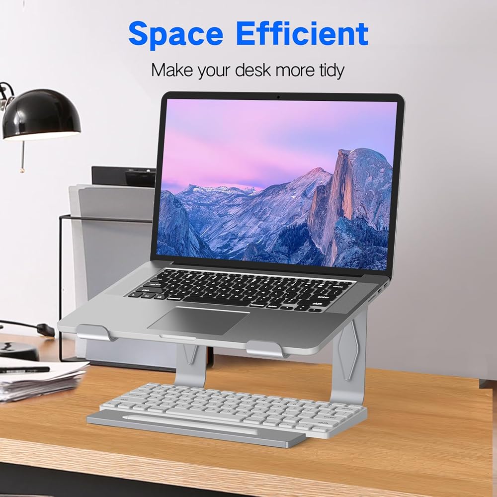 ✅[تصميم مريح]: يمكن لحامل الكمبيوتر المحمول هذا رفع الكمبيوتر المحمول الخاص بك بمقدار 5.83 بوصة إلى مستوى عرض مثالي، ويساعدك على تحسين وضعك وتقليل آلام الرقبة والكتف. وضعية الجلوس الجيدة تقلل من آفات الرقبة والخصر. بالإضافة إلى ذلك، يمكنك تنظيم العناصر المكتبية مثل لوحة المفاتيح والماوس أسفل الحامل.