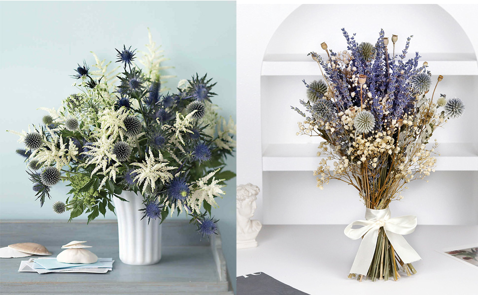 جودة عالية: سيقان الزهور الدائمة محفوظة، حقيقية وطبيعية مع اللون الأزرق الأصلي، عتيقة وأنيقة، وتجلب ديكورات جميلة سنة بعد عام.
